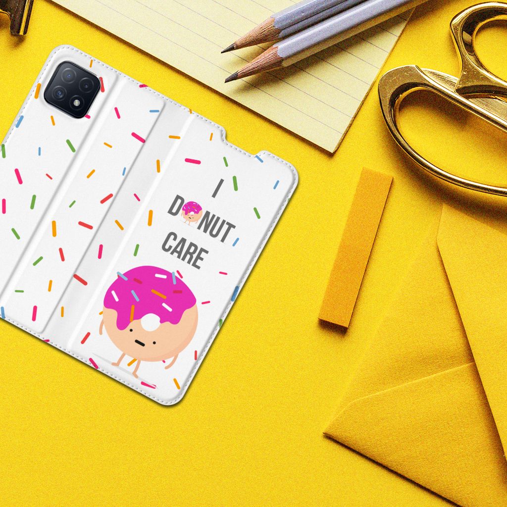 De cartoon met Donut op dit design hoesje geeft jouw smartphone een grappige en vrolijke uitstraling. De OPPO A73 5G Flip Style Cover zorgt ervoor dat je je schouders op zult halen als je telefoon een keer op de grond valt. Omdat er geen schade zal optreden kun jij je weg weer heel makkelijk vervolgen. De grappige Donut Care stand case is een zeer populair product. Allereerst is het nergens anders te krijgen. Het design is namelijk van de hand van onze eigen ontwerper. Daarnaast zal de case jouw smartphone aan alle zijden beschermen. Ook heeft het Donut Care hoesje een vakje aan de binnenzijde en een speciale standaard. Ook kun je je eigen unieke hoesje ontwerpen, met eigen cartoons, foto’s en teksten. De houder aan de binnenzijde van de Donut Care case is van TPU, de buitenzijde van PU leer.