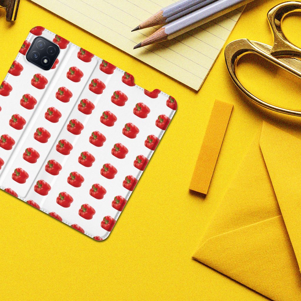 Er zit pit in jouw OPPO A73 5G Flip Style Cover dankzij dit design met rode paprika’s. Paprika’s zijn er in allerlei kleuren en vormen en ze hebben gemeen dat ze heel erg gezond zijn. De rode paprika’s op deze case staan op een grijs met witte geblokte achtergrond en vormen een opvallende verschijning. Heb jij ooit iemand in je nabije omgeving rond zien lopen met een design hoesje met rode paprika’s? Waarschijnlijk niet. Dit stand hoesje met rode paprika’s beschermt jouw telefoon aan alle zijden en beschikt over een opbergvakje voor een pasje of briefgeld. De case sluit perfect af met de magneet aan de binnenzijde. Zeker weten dat je met dit hoesje met rode paprika’s een smartphone accessoire te pakken hebt waarmee je jezelf in de schijnwerpers zet. De houder aan de binnenzijde van de stand case met rode paprika’s is van TPU. Als je andere kleuren paprika’s op je hoesje wilt, raden we je aan ons assortiment design hoesjes te bekijken of zelf een hoesje te ontwerpen.
