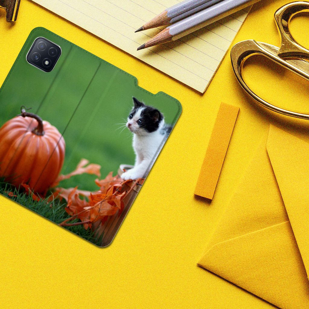 Een huisdier is goed voor je hart: de hoeveelheid stress in je lijf kan aanzienlijk verlagen als je een kat hebt rondlopen. Zelfs het aaien van een kat kan het stressniveau in je lijf al doen verlagen. De kat op dit smartphone hoesje is sowieso zeer aaibaar, gezien de blik en de houding van het dier. De herfstachtige bladeren en de pompoen geven dit stand hoesje met design een natuurlijke uitstraling. Jouw smartphone is met een OPPO A73 5G Hoesje maken zeer duurzaam te noemen. Er is geen betere bescherming dan dit hoesje, dat ook nog eens 1 opbergvakje heeft en een standaard. Alle zijden van dit hoesje zijn bedrukt. Het hebben van een kat kan verzachtend werken, bijvoorbeeld na een heftige gebeurtenis. Het hoesje is aan de binnenzijde van TPU (houder).