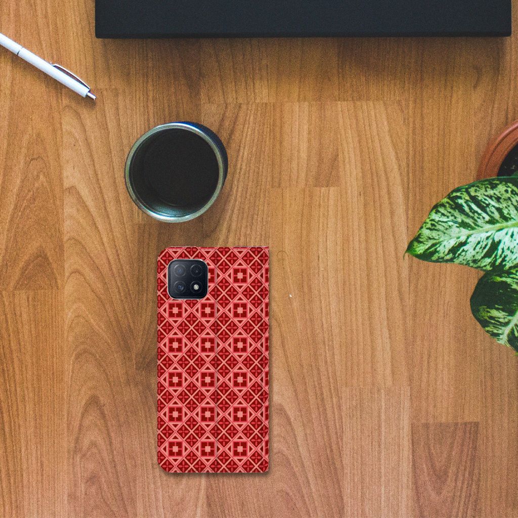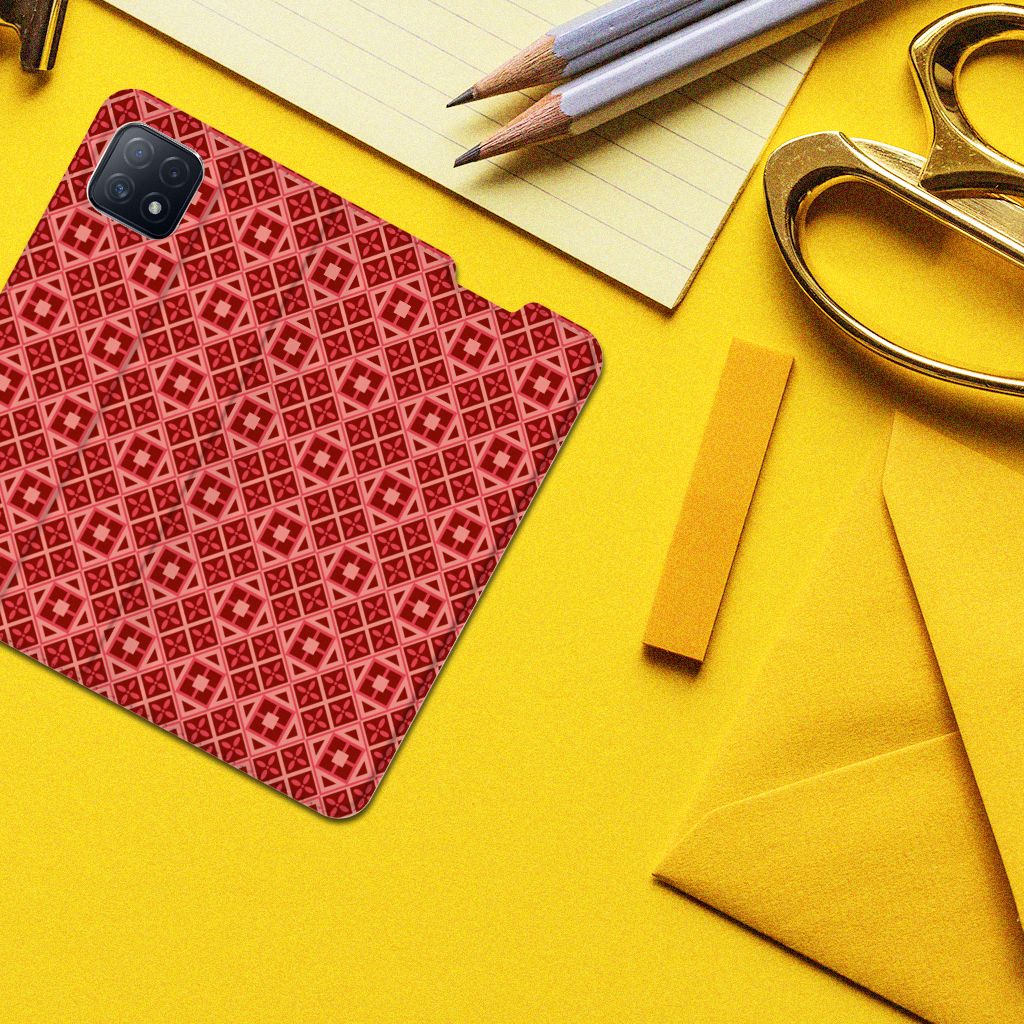OPPO A73 5G Hoesje met Magneet Geruit Rood