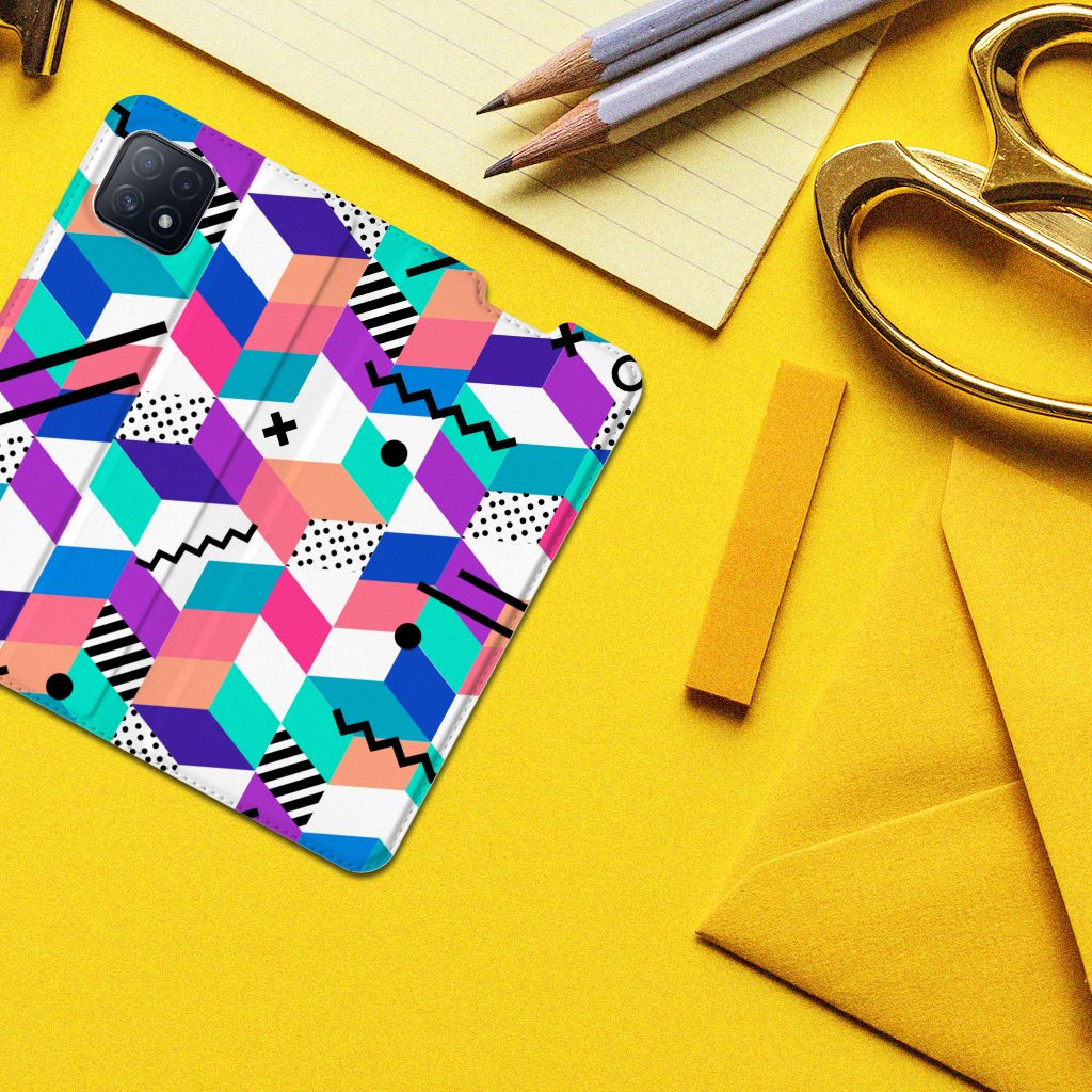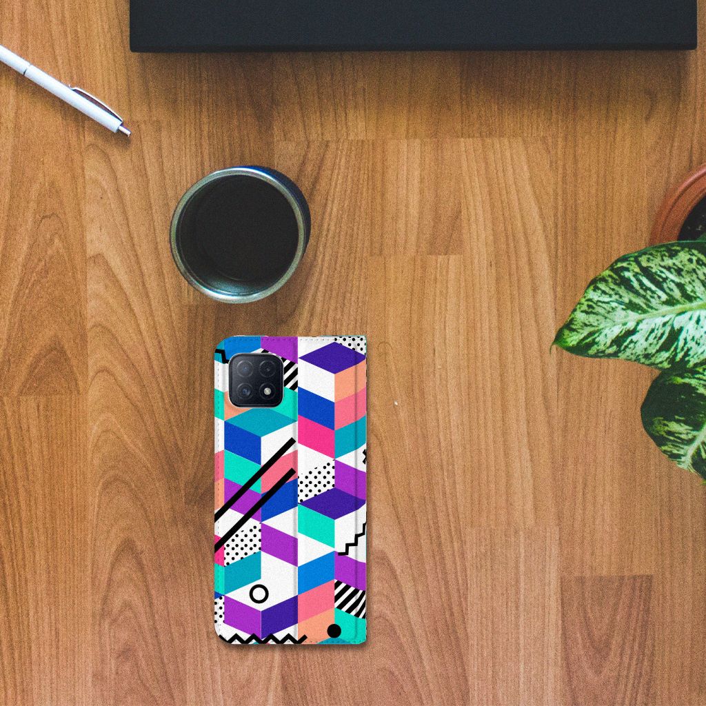 Stand Case OPPO A73 5G Design Blokken Kleurrijk