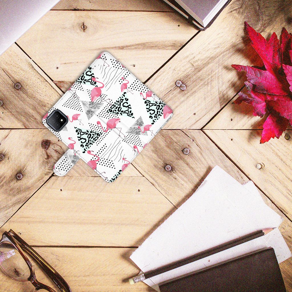 OPPO A73 5G Telefoonhoesje met magnetische lipje als sluiting Flamingo Triangle