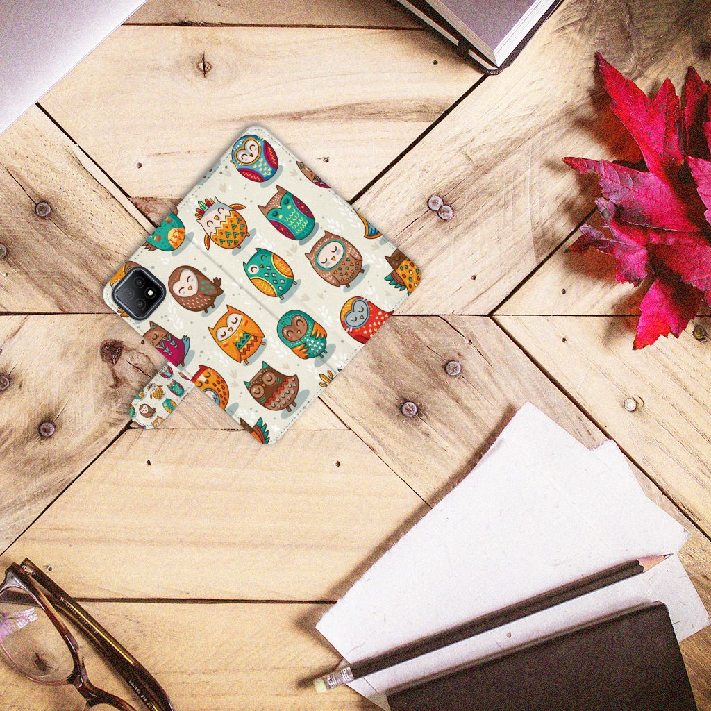 OPPO A73 5G Telefoonhoesje met ruimte voor drie pasjes Vrolijke Uilen