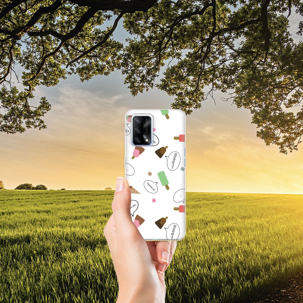Van deze vrolijke OPPO A74 4G Siliconen Case met daarop verschillende soorten ijsjes met tekstwolkjes krijg je sowieso een vrij en zomers gevoel. De zomer komt naar je toe met deze print van ijsjes met tekstwolkjes. Ben je op het strand, dan ontbreekt een lekker ijsje natuurlijk niet. Net zoals je je smartphone bij de hand hebt, met daaromheen een design hoesje met bijzondere ijsjes en tekstwolkjes. Jouw telefoon kan dan de bescherming in de vorm van een tpu hoesje met ijsjes zeer goed gebruiken. De bovenkant van dit hoesje wordt bedrukt met ijsjes en tekstwolkjes, de zijkanten blijven doorzichtig. De case is gemaakt van schokabsorberend materiaal en past altijd in je broekzak. Onder alle weersomstandigheden zal deze TPU case perfect functioneren, ook in de zomer met een ijsje in je hand.