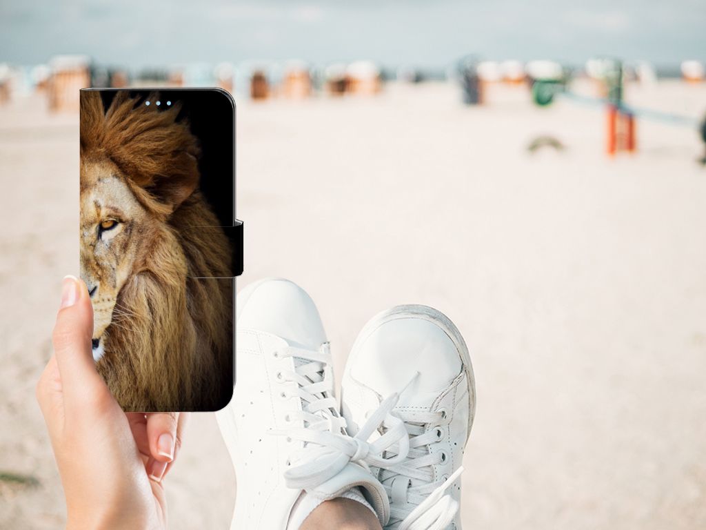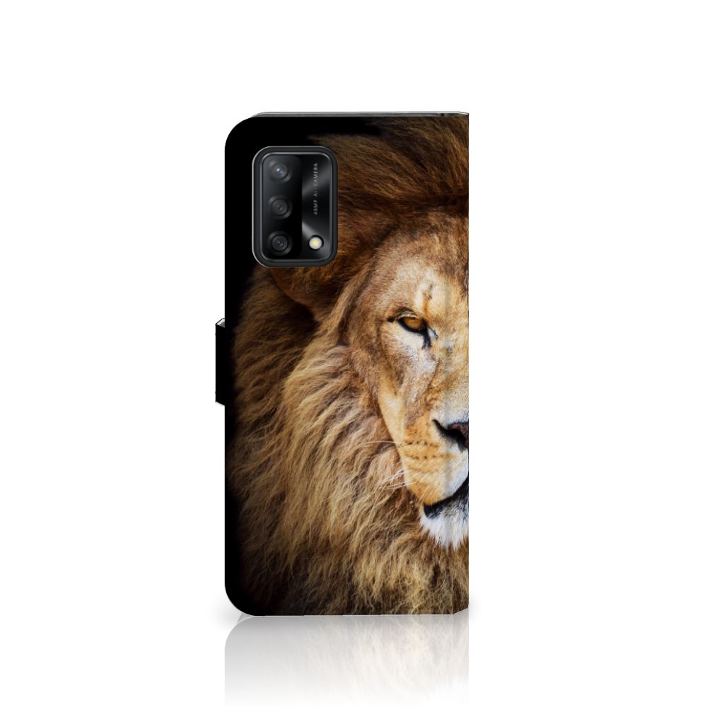 OPPO A74 4G Telefoonhoesje met Pasjes en met magnetische sluitclip Leeuw