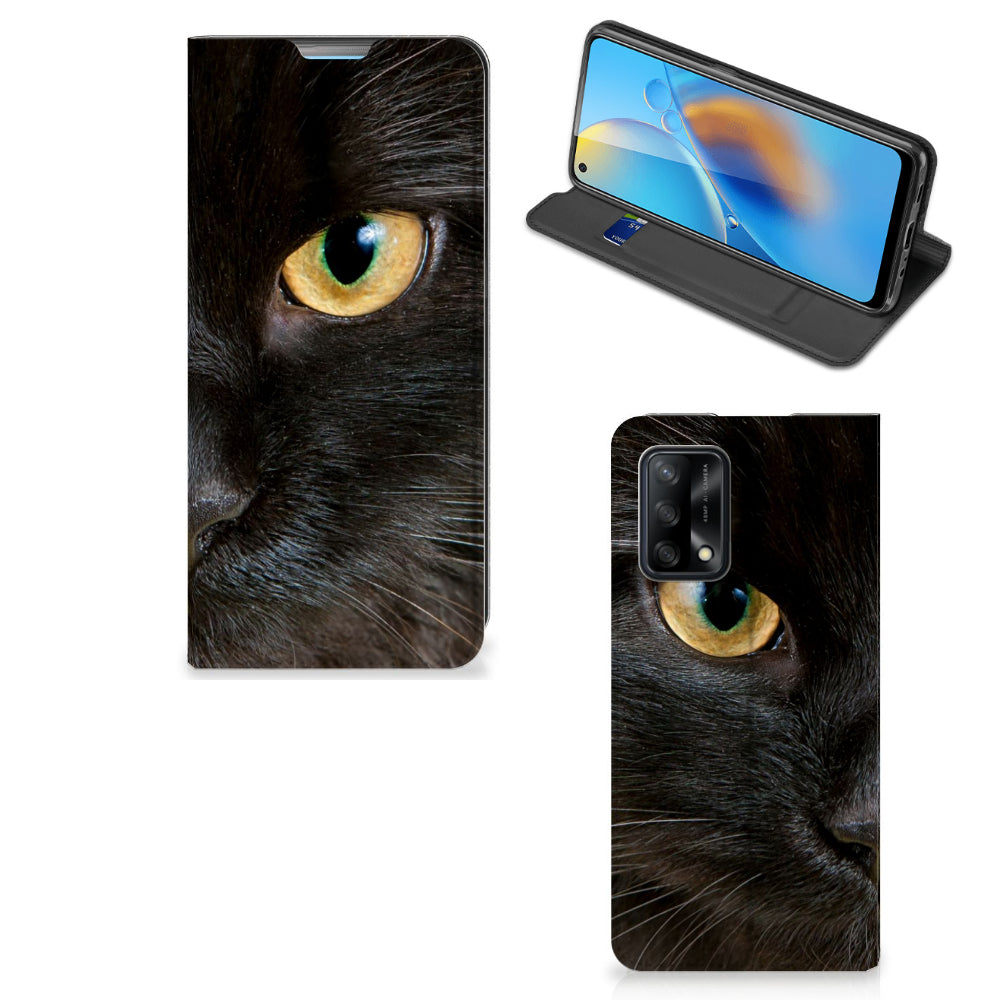 OPPO A74 4G Telefoonhoesje sluit met magnetische sluitclip Design Zwarte Kat