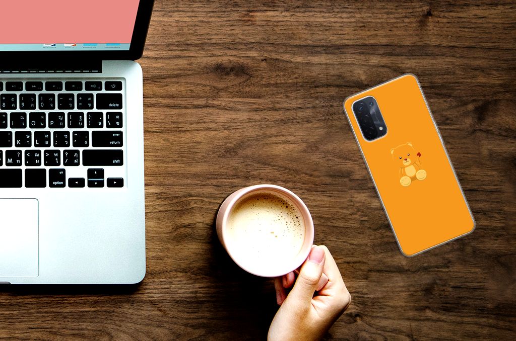 Dit vrolijke teddybeertje zou je het liefst willen knuffelen. Dat wordt lastig, op een telefoonhoesje. Maar dat betekent niet dat dit design niet evengoed onwijs schattig is. Het ontwerp is vanwege de oranje achtergrondkleur evengoed subtiel. Dit Baby Beer-design is perfect voor de knuffelberen onder ons. Dit design staat op een Telefoonhoesje met Naam voor je OPPO A74 5G | A54 5G. TPU is flexibel en onbreekbaar. Zo is je telefoon aan de achterkant en de randen heel goed beschermd. De case is aan de bovenkant bedrukt, de randen blijven transparant. Het TPU-hoesje is perfect te combineren met een screenprotector, zo zijn je telefoon en je beeldscherm perfect beschermd.