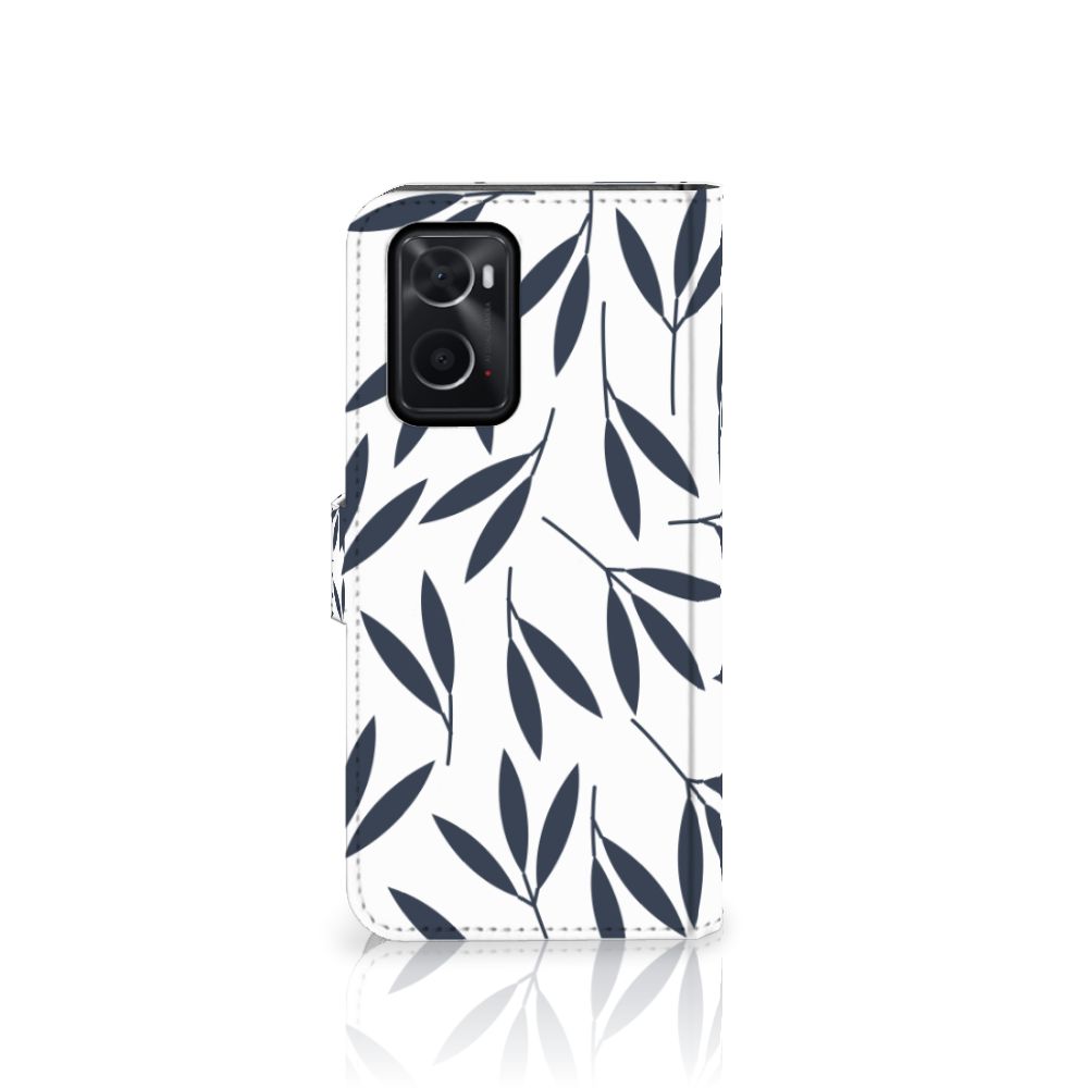 OPPO A76 | A96 Hoesje met magnetische lipje als sluiting Leaves Blue
