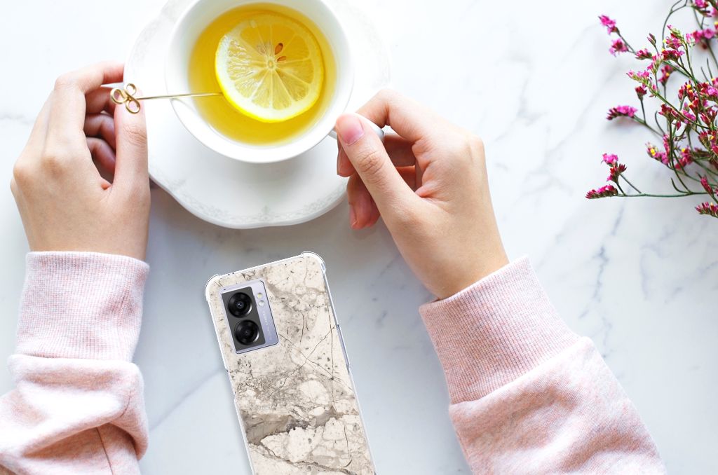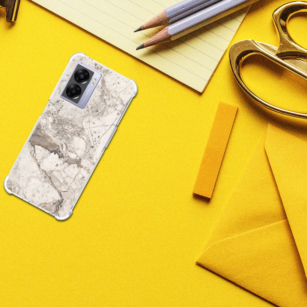 Ben je op zoek naar een uniek telefoonhoesje voor je OPPO A77 5G | A57 5G? Dan ben je bij B2C Telecom aan het juiste adres! Speciaal voor jou hebben we dit prachtige Marmer Beige design in onze collectie hoesjes opgenomen. Het design wordt bedrukt op een Anti-Shock Hoesje en is gemaakt van flexibel rubber. Het hoesje is perfect voor de actieve smartphonegebruiker door de opstaande randen/hoeken. Denk aan mensen die veel sporten, reizen of wandelen en net iets meer zekerheid willen als het op hun geliefde telefoon aankomt. Het design wordt alleen aan de bovenkant van het hoesje bedrukt en de randen blijven transparant. Aan de zijkanten zijn uitsparingen gemaakt waardoor je met gemak alle knoppen en poorten kunt bedienen. Wij adviseren om dit hoesje in combinatie met een screenprotector te gebruiken voor een langere levensduur van je telefoon. Wil je dit hoesje nog iets extra's geven? Voeg dan gratis je naam of een quote toe! Is dit design hoesje toch niet helemaal wat je zocht? Ontwerp dan zelf een hoesje in ons ontwerpprogramma.