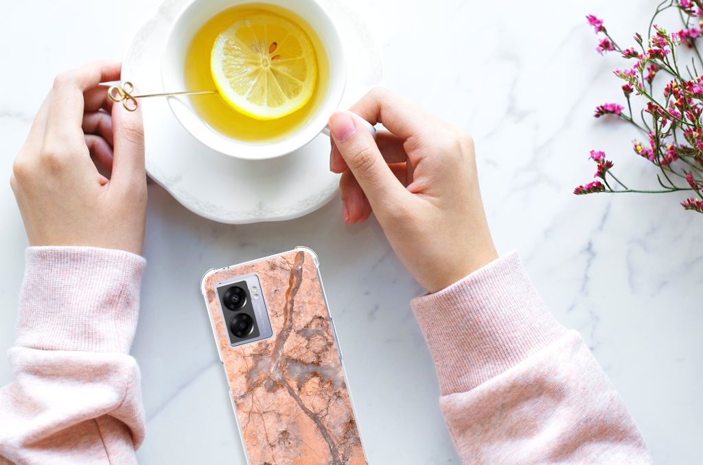 Ben je op zoek naar een uniek telefoonhoesje voor je OPPO A77 5G | A57 5G? Dan ben je bij B2C Telecom aan het juiste adres! Speciaal voor jou hebben we dit prachtige Marmer Oranje design in onze collectie hoesjes opgenomen. Het design wordt bedrukt op een Anti-Shock Hoesje en is gemaakt van flexibel rubber. Het hoesje is perfect voor de actieve smartphonegebruiker door de opstaande randen/hoeken. Denk aan mensen die veel sporten, reizen of wandelen en net iets meer zekerheid willen als het op hun geliefde telefoon aankomt. Het design wordt alleen aan de bovenkant van het hoesje bedrukt en de randen blijven transparant. Aan de zijkanten zijn uitsparingen gemaakt waardoor je met gemak alle knoppen en poorten kunt bedienen. Wij adviseren om dit hoesje in combinatie met een screenprotector te gebruiken voor een langere levensduur van je telefoon. Wil je dit hoesje nog iets extra's geven? Voeg dan gratis je naam of een quote toe! Is dit design hoesje toch niet helemaal wat je zocht? Ontwerp dan zelf een hoesje in ons ontwerpprogramma.