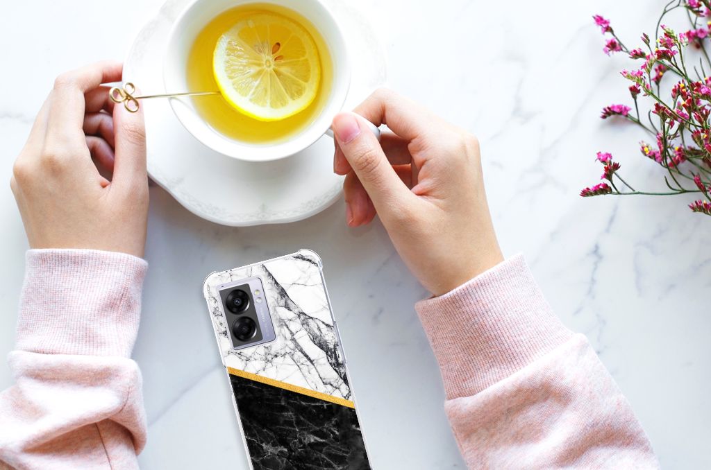 Ben je op zoek naar een uniek telefoonhoesje voor je OPPO A77 5G | A57 5G? Dan ben je bij B2C Telecom aan het juiste adres! Speciaal voor jou hebben we dit prachtige Marble White Black design in onze collectie hoesjes opgenomen. Het design wordt bedrukt op een Anti-Shock Hoesje en is gemaakt van flexibel rubber. Het hoesje is perfect voor de actieve smartphonegebruiker door de opstaande randen/hoeken. Denk aan mensen die veel sporten, reizen of wandelen en net iets meer zekerheid willen als het op hun geliefde telefoon aankomt. Het design wordt alleen aan de bovenkant van het hoesje bedrukt en de randen blijven transparant. Aan de zijkanten zijn uitsparingen gemaakt waardoor je met gemak alle knoppen en poorten kunt bedienen. Wij adviseren om dit hoesje in combinatie met een screenprotector te gebruiken voor een langere levensduur van je telefoon. Wil je dit hoesje nog iets extra's geven? Voeg dan gratis je naam of een quote toe! Is dit design hoesje toch niet helemaal wat je zocht? Ontwerp dan zelf een hoesje in ons ontwerpprogramma.