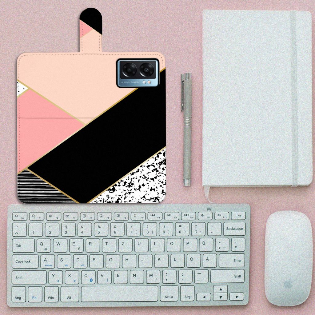 OPPO A77 5G | A57 5G Bookcase met ruimte voor 3 pasjes Zwart Roze Vormen