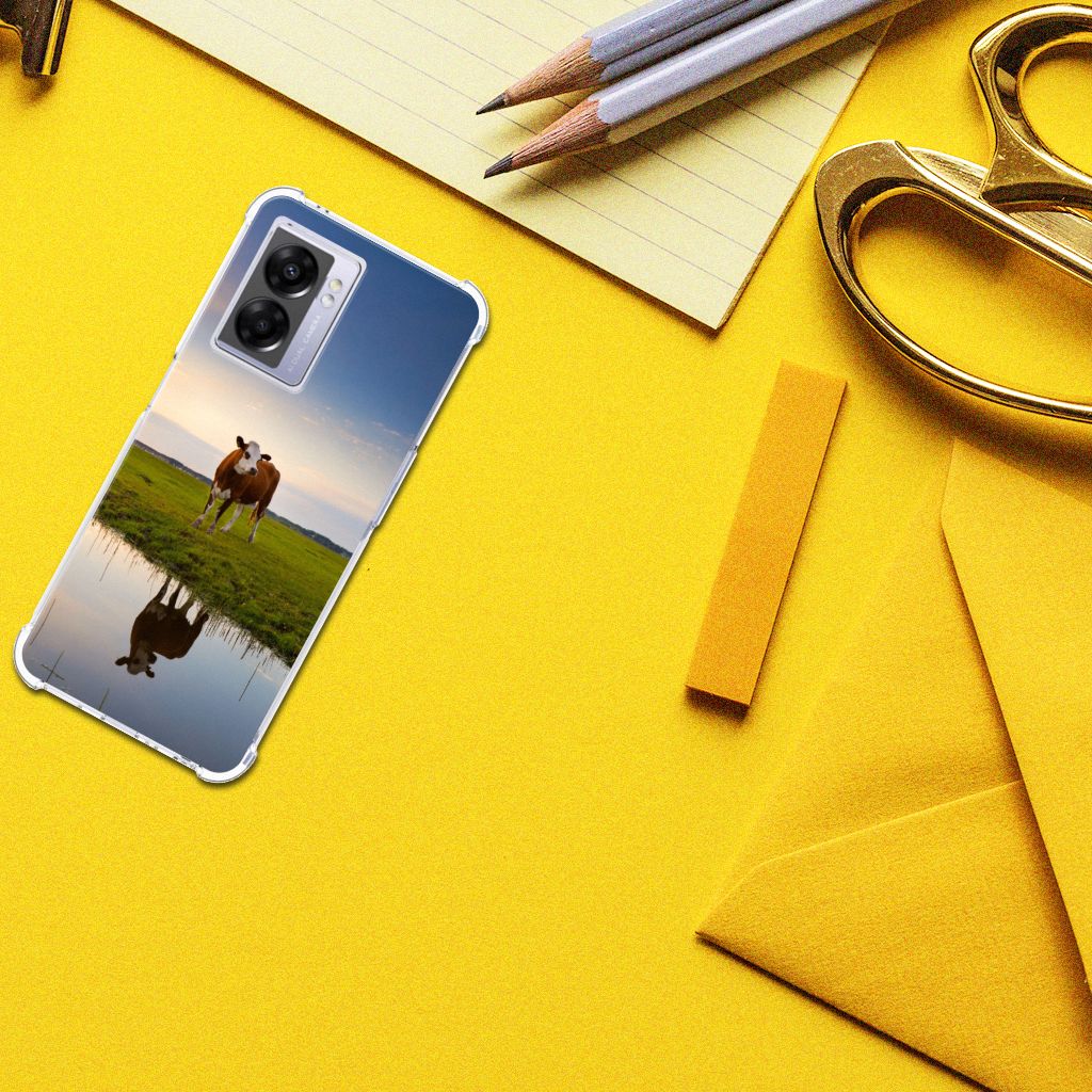 Ben je op zoek naar een uniek telefoonhoesje voor je OPPO A77 5G | A57 5G? Dan ben je bij B2C Telecom aan het juiste adres! Speciaal voor jou hebben we dit prachtige Koe design in onze collectie hoesjes opgenomen. Het design wordt bedrukt op een Case Anti-shock en is gemaakt van flexibel rubber. Het hoesje is perfect voor de actieve smartphonegebruiker door de opstaande randen/hoeken. Denk aan mensen die veel sporten, reizen of wandelen en net iets meer zekerheid willen als het op hun geliefde telefoon aankomt. Het design wordt alleen aan de bovenkant van het hoesje bedrukt en de randen blijven transparant. Aan de zijkanten zijn uitsparingen gemaakt waardoor je met gemak alle knoppen en poorten kunt bedienen. Wij adviseren om dit hoesje in combinatie met een screenprotector te gebruiken voor een langere levensduur van je telefoon. Wil je dit hoesje nog iets extra's geven? Voeg dan gratis je naam of een quote toe! Is dit design hoesje toch niet helemaal wat je zocht? Ontwerp dan zelf een hoesje in ons ontwerpprogramma.