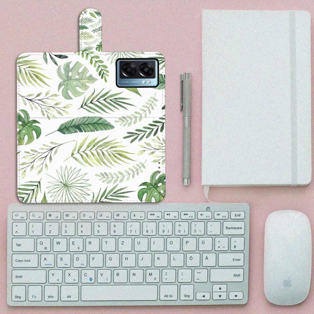 OPPO A77 5G | A57 5G Hoesje met ruimte voor pasjes Leaves
