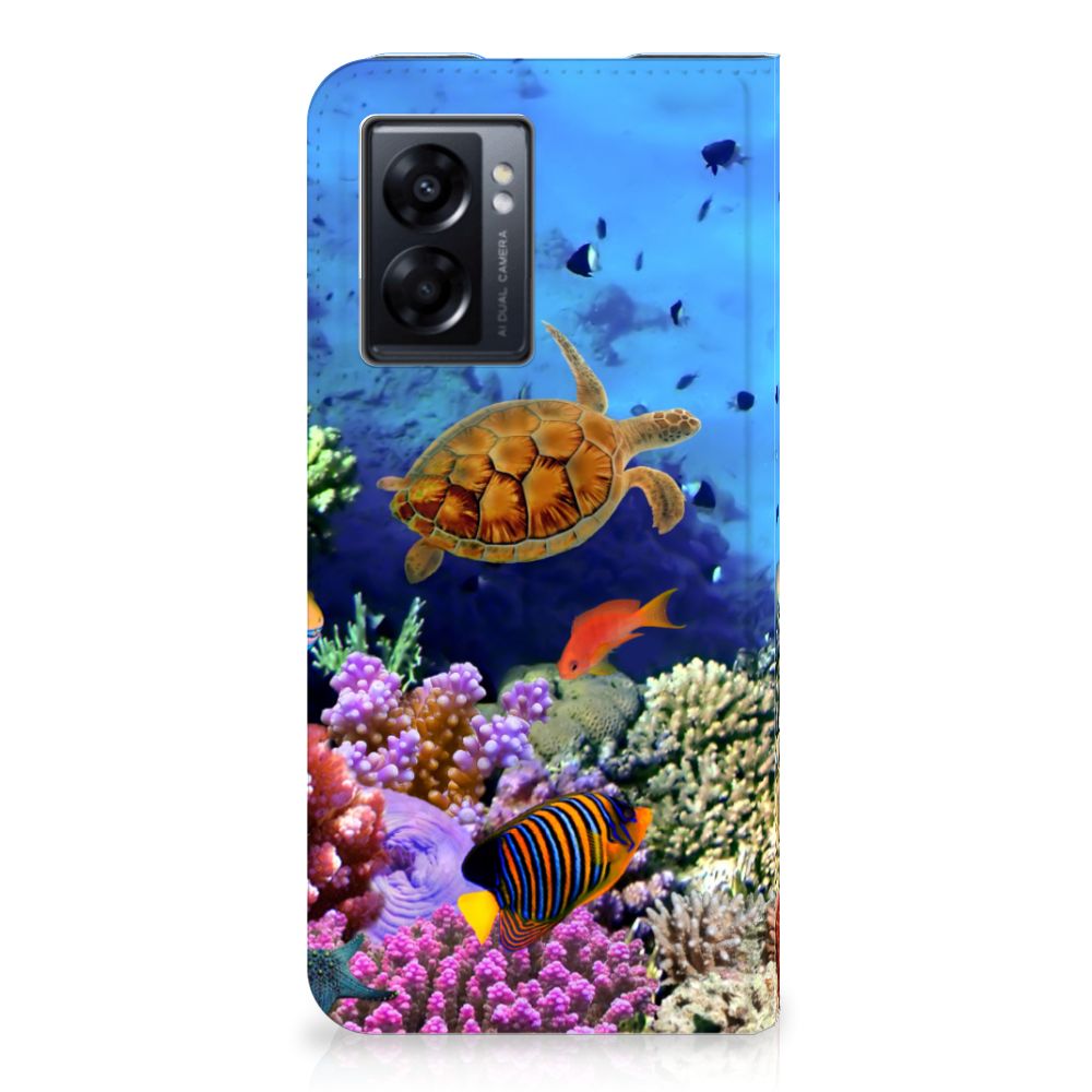 Dit kleurrijke hoesje met tropische Vissen is een ware eyecatcher. Als je aan het duiken bent en je treft een school aan met dit soort opvallende vissen, dan heb je een geweldige ervaring. Maar je hoeft er eigenlijk niet per se het water voor in te duiken. Want wij hebben een schitterende verzameling vissen op dit design hoesje gezet. Met onze zeer geavanceerde printer zetten we de afbeelding van vissen op alle zijden van de OPPO A77 5G | A57 5G Hoesje maken. De case heeft aan de binnenkant een vakje waarin je jouw creditcard of ander pasje kwijt kunt. Ga je een dagje vissen, dan hoef je de portemonnee dus ook niet op zak te hebben. Verder is je telefoon natuurlijk maximaal beschermd met deze stand case met print van tropische vissen. De houder aan de binnenzijde van het design hoesje met vissen print is van TPU.