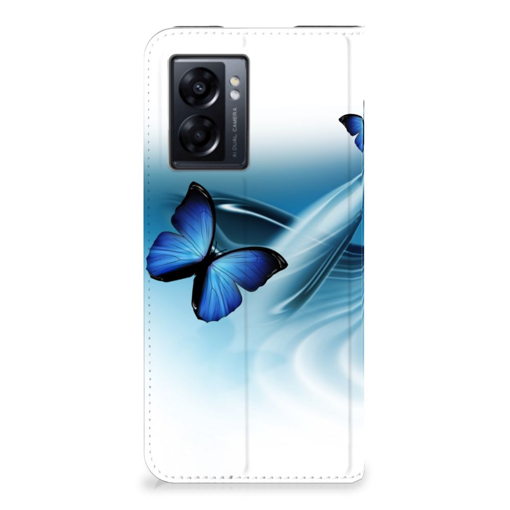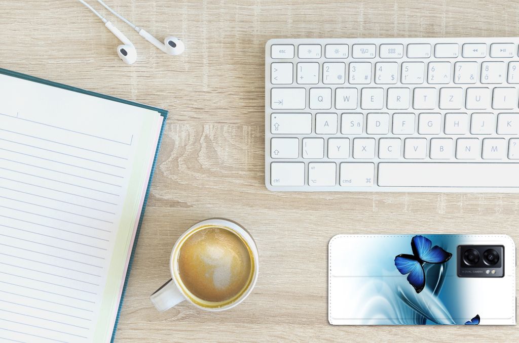 Deze vrolijke OPPO A77 5G | A57 5G Hoesje maken met blauwe vlinders is een ware eyecatcher. De meeste vlinders hebben een onopvallende vleugelkleur, andere soorten hebben juist heldere en felle kleuren. Wij kunnen deze blauwe vlinders op een zeer handige stand case zetten. Deze hoesjes zijn het meest gewild. Met onze geavanceerde printer zetten we de afbeelding van vlinders op alle zijden van het hoesje. De case met vlinders heeft aan de binnenkant een houder waarin je jouw creditcard of ander pasje kwijt kunt. De case heeft bovendien een handige standaard. Verder is je telefoon natuurlijk maximaal beschermd met deze stand case met print van blauwe vlinders. De houder aan de binnenzijde van het design hoesje met vlinder print is van TPU.
