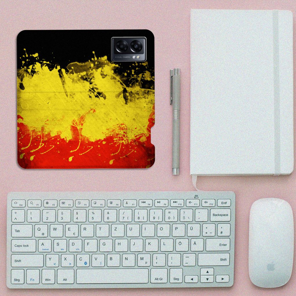 Dit design hoesje met Belgische kleuren van de vlag ziet er zeer fraai uit. De redenen om België te bezoeken zijn legio. Zo is Antwerpen een populaire stad om te winkelen, zijn Gent, Brussel en Brugge erg in trek als stedentripbestemming en kunnen natuur- en sportliefhebbers zich in grote delen van het land uitstekend vermaken. Wat België zo leuk maakt als bestemming is dat je direct het gevoel hebt in het buitenland te zijn, maar dat het toch heel vertrouwd aanvoelt. Ben jij liefhebber van dit gezellige land, dan zal dit design hoesje in Belgische kleuren je waarschijnlijk wel bevallen. Ze staan op een OPPO A77 5G | A57 5G Standcase. Deze case beschermt jouw telefoon aan alle kanten en beschikt over een 1 opbergvakje en een speciale standaard. Het hoesje wordt afgesloten met een magneet aan de binnenzijde. De houder aan de binnenzijde is van TPU.
