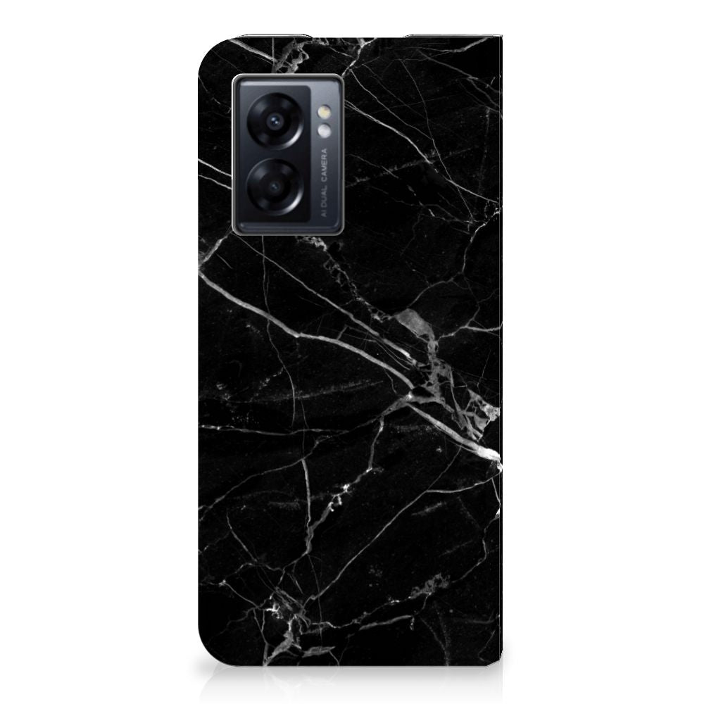 Dit design hoesje met Marmer Zwart is voor de artistieke personen onder ons. De Grieken en Romeinen wisten het materiaal al te waarderen door het in de bouw toe te passen. Naast het witte marmer met haar zacht grijze geaderde belijning zijn de diverse soorten in een gevarieerd kleurenpallet te krijgen. We hebben mooie kleuren op design hoesjes gezet, zoals in dit geval zwart marmer. Dit is een OPPO A77 5G | A57 5G Standcase met marmer in zwarte kleur. Het marmer wordt bedrukt op alle zijden van een stand case, die beschikt over 1 vakje voor een pasje en een magnetische sluiting aan de binnenzijde. Verder heeft de hoes een houder van TPU. De rijkdom aan kleuren en varianties in afwerking geeft ontwerpers de vrijheid om met marmer hele mooie architectonische projecten te realiseren. Wij hebben onze ontwerper tevens veel vrijheid gegeven. Het resultaat zie je terug in deze stand case met zwart marmer, dat de ideale bescherming voor jouw smartphone biedt.