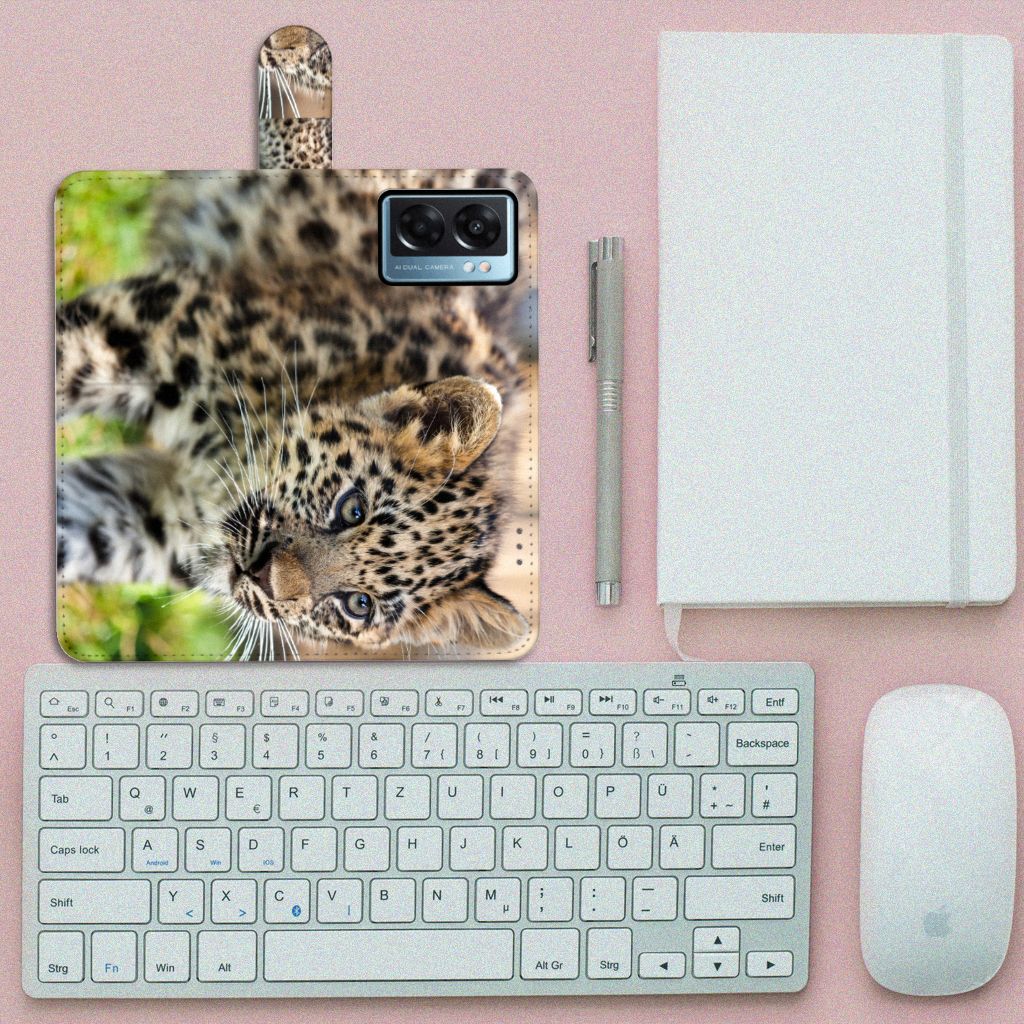 OPPO A77 5G | A57 5G Telefoonhoesje met magneetsluiting Baby Luipaard