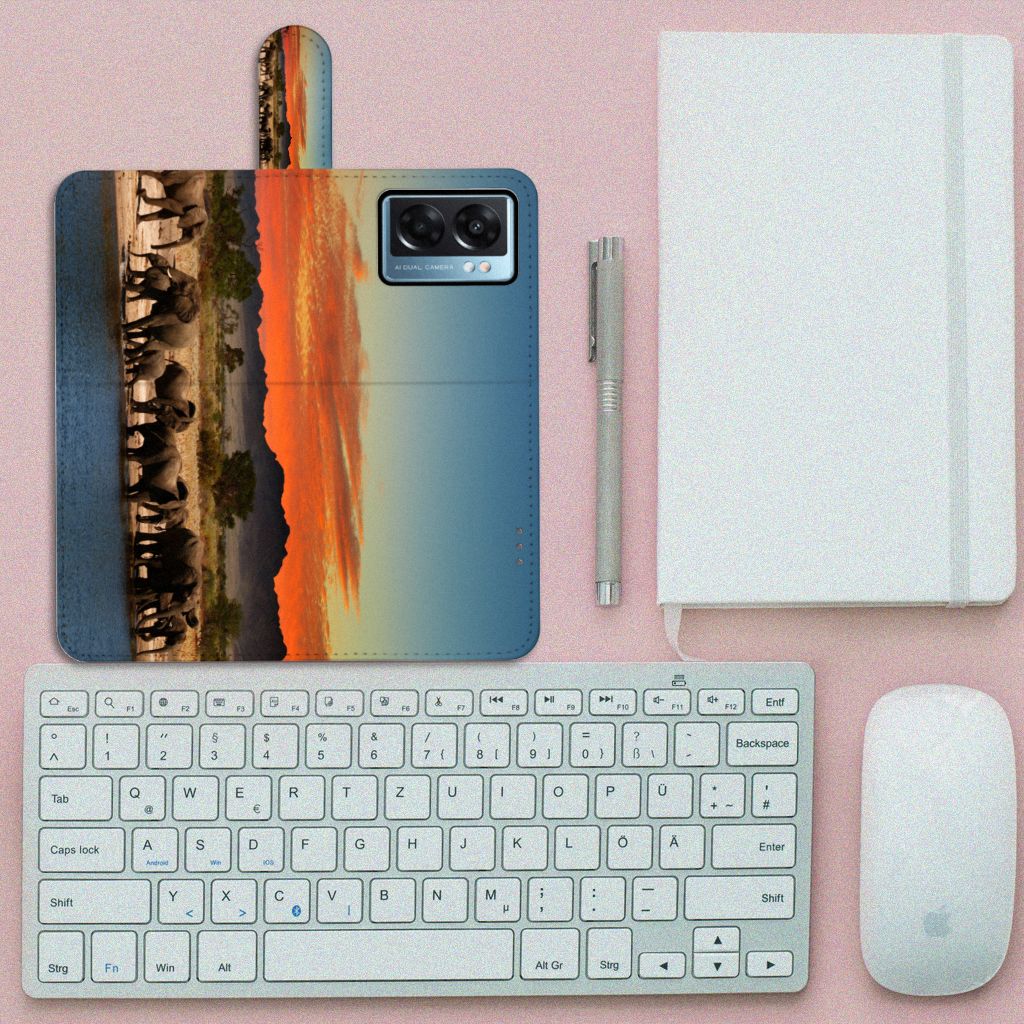 OPPO A77 5G | A57 5G Telefoonhoesje met ruimte voor 3 pasjes Olifanten
