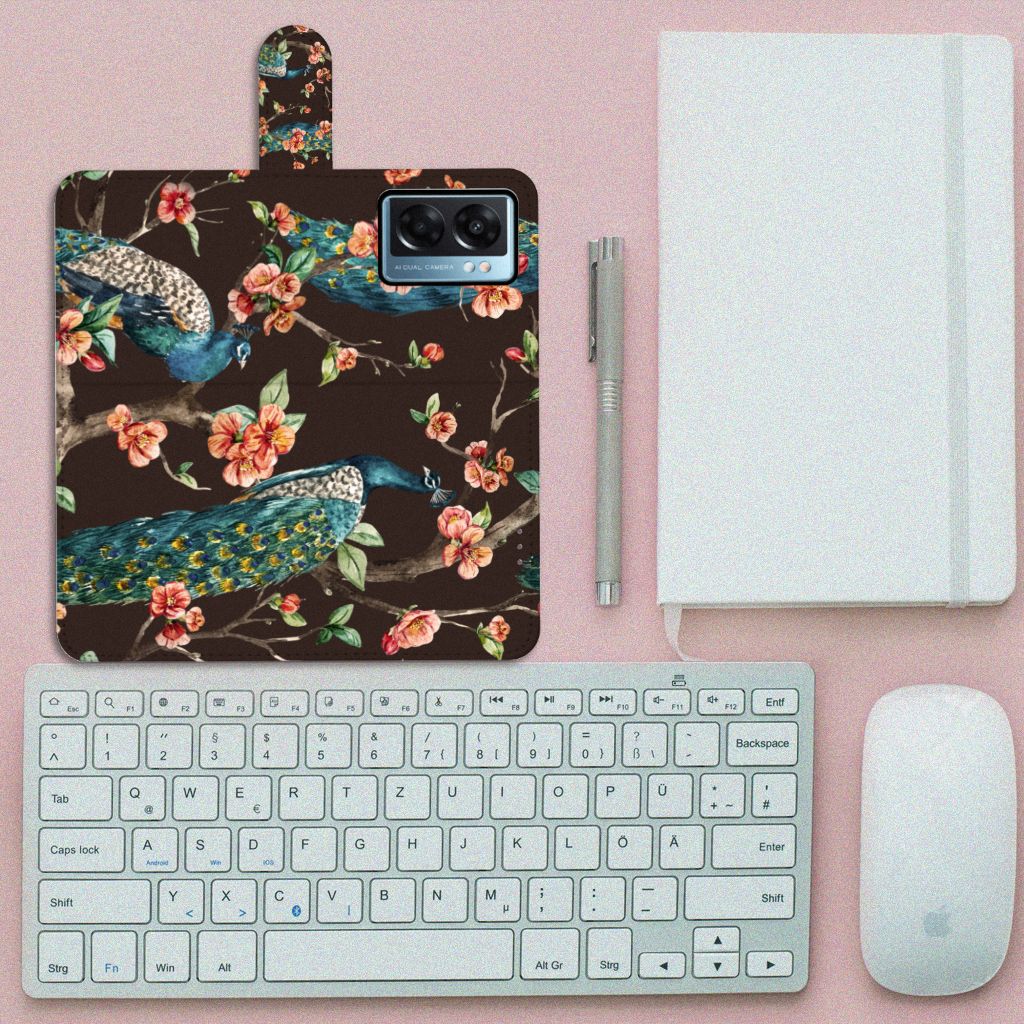 OPPO A77 5G | A57 5G Telefoonhoesje sluit met magnetisch lipje Pauw | Bloemen