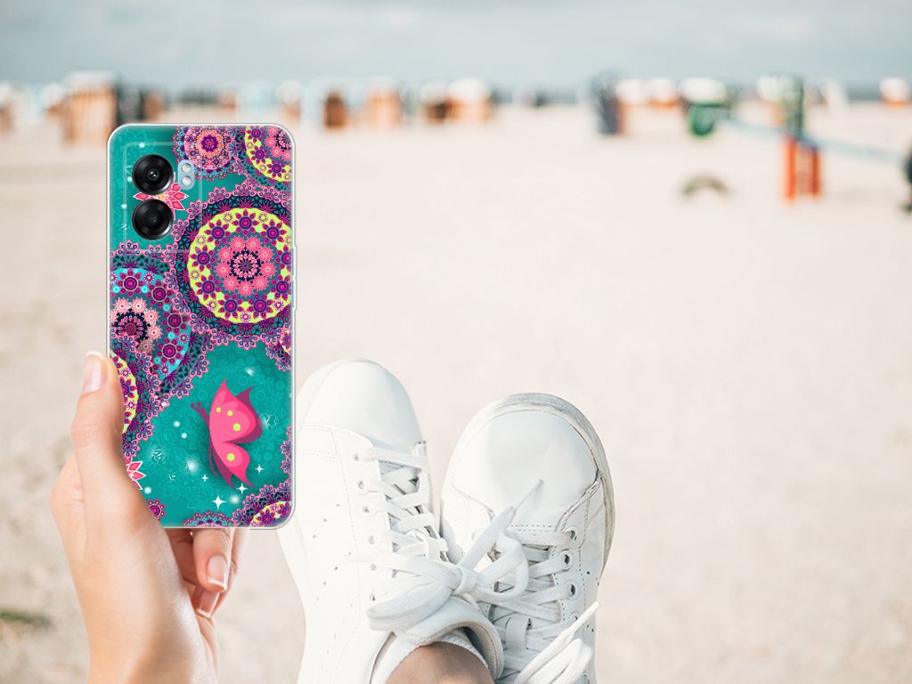 Deze opvallende OPPO A77 | A57 5G Hoesje maken met Cirkels en Vlinders is een ware eyecatcher. De meeste vlinders hebben een onopvallende vleugelkleur en dat kun je van de soort op dit hoesje ook zeker wel zeggen. Wij kunnen deze opvallende vlinders en cirkels op een zeer handige tpu case zetten. Deze hoesjes zijn gewild omwille hun flexibiliteit. Met onze geavanceerde printer zetten we de print van opvallende vlinders en cirkels op de achterkant van het hoesje. De case met vlinders en cirkels blijft aan de zijkanten doorzichtig, zodat je maximaal het design van je smartphone behoudt. Verder is je telefoon natuurlijk goed beschermd met deze tpu case met print van blauwe vlinders. De bovenkant wordt bedrukt, de zijkanten niet. Met een screenprotector bescherm je ook het scherm maximaal.