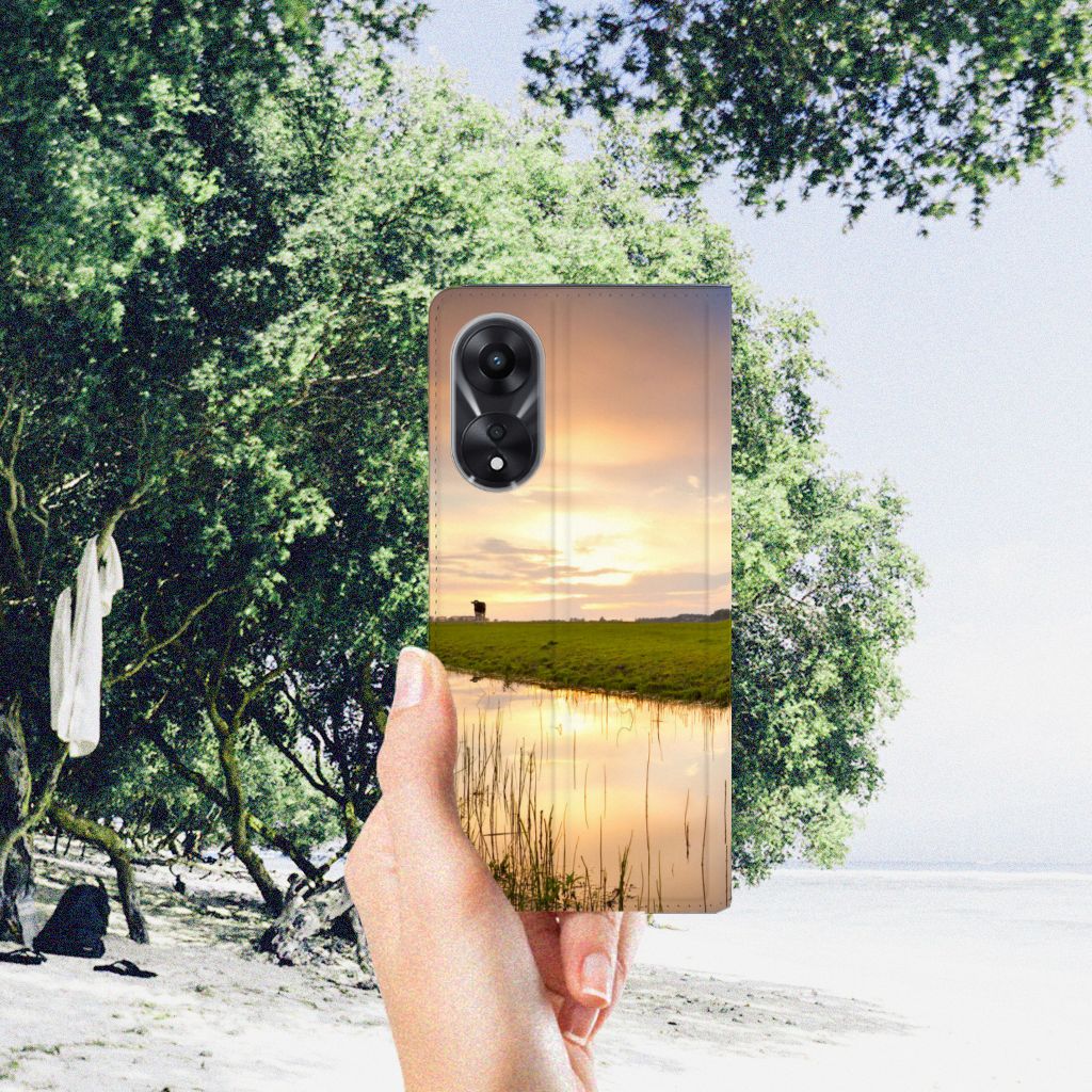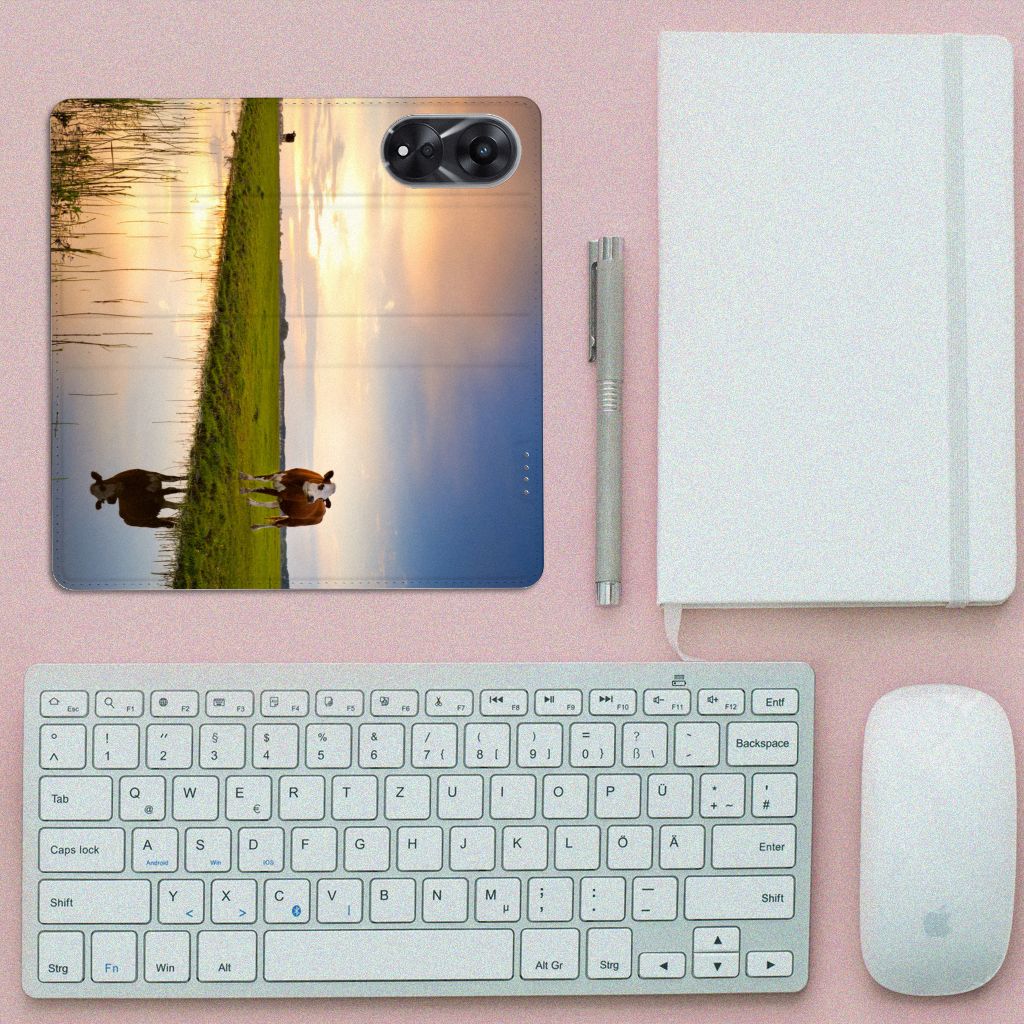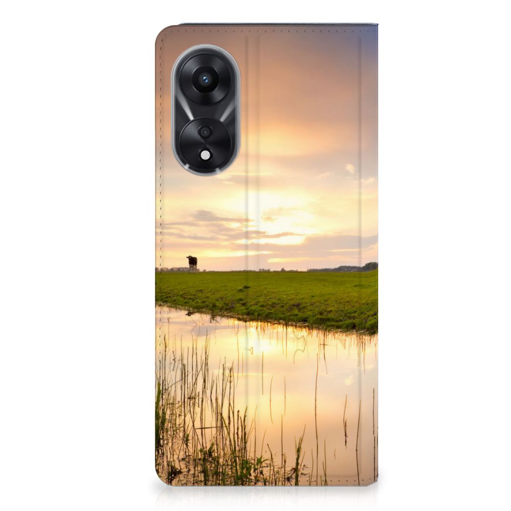 Het levert een idyllisch plaatje op, dit hoesje met een koe en ondergaande zon op de achtergrond. Door een koe buiten te laten lopen en grazen, hebben ze minder kans om ziek te worden. De Koe graast het liefst met soortgenoten, al zijn deze een stukje van de koe op de case verwijderd. Dit levert ook een mooi plaatje op, zoals je kunt zien op dit design hoesje. Deze stand case ziet er strak uit en is voorzien van verschillende uitsparingen. Een OPPO A78 | A58 5G Hoesje maken met magneet aan de binnenzijde beschermt jouw smartphone overal. Alle zijden zijn bedrukt. Koeien hebben lange graasperioden nodig, afgewisseld door rust- en herkauwperioden. Zo goed als grazen voelt voor koeien, zo lang zal jouw design hoesje meegaan. De binnenkant van de stand case is van TPU, de buitenzijde van leer.