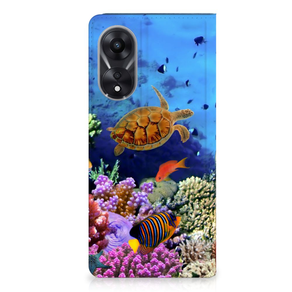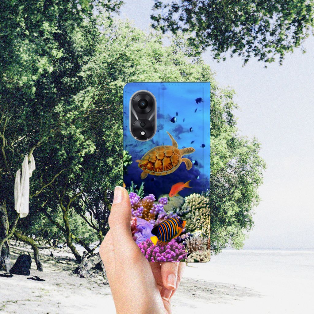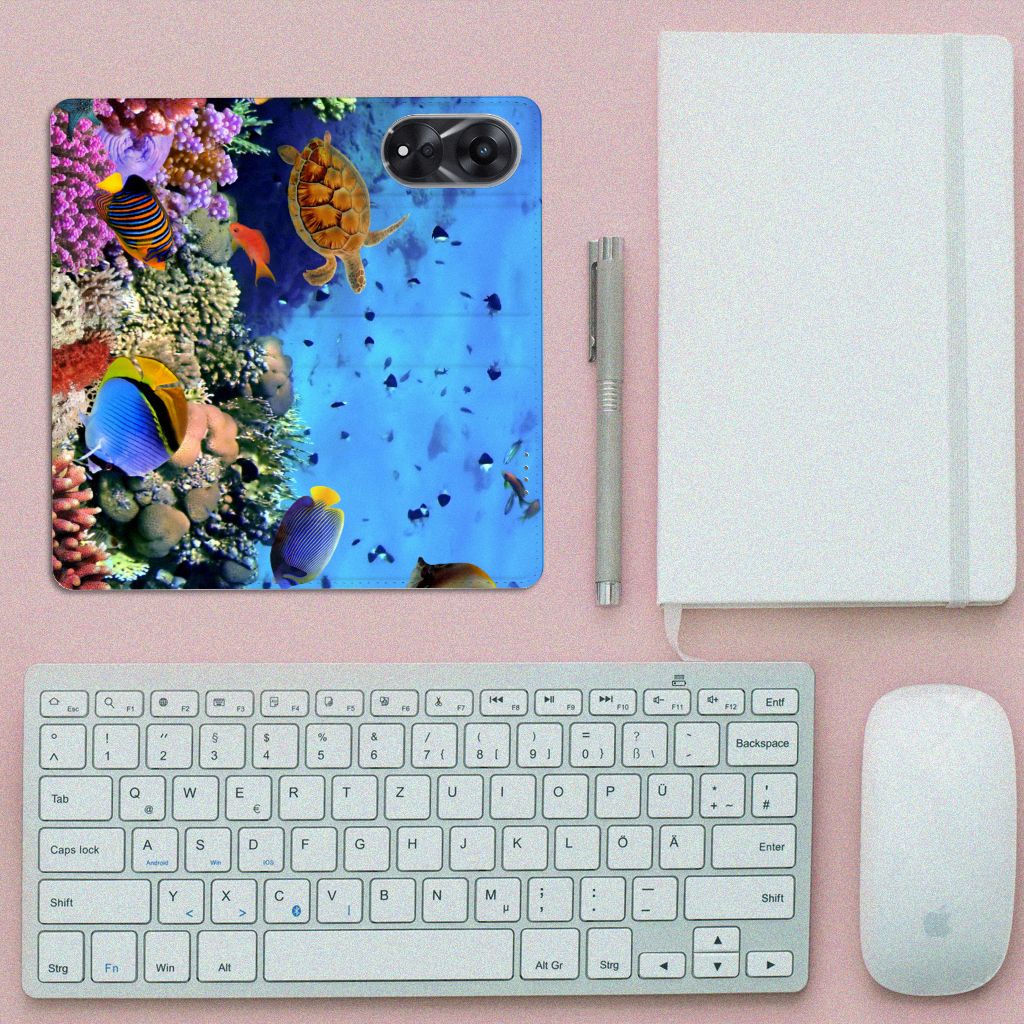 Dit kleurrijke hoesje met tropische Vissen is een ware eyecatcher. Als je aan het duiken bent en je treft een school aan met dit soort opvallende vissen, dan heb je een geweldige ervaring. Maar je hoeft er eigenlijk niet per se het water voor in te duiken. Want wij hebben een schitterende verzameling vissen op dit design hoesje gezet. Met onze zeer geavanceerde printer zetten we de afbeelding van vissen op alle zijden van de OPPO A78 | A58 5G Hoesje maken. De case heeft aan de binnenkant een vakje waarin je jouw creditcard of ander pasje kwijt kunt. Ga je een dagje vissen, dan hoef je de portemonnee dus ook niet op zak te hebben. Verder is je telefoon natuurlijk maximaal beschermd met deze stand case met print van tropische vissen. De houder aan de binnenzijde van het design hoesje met vissen print is van TPU.