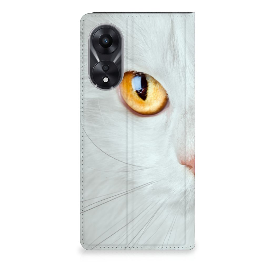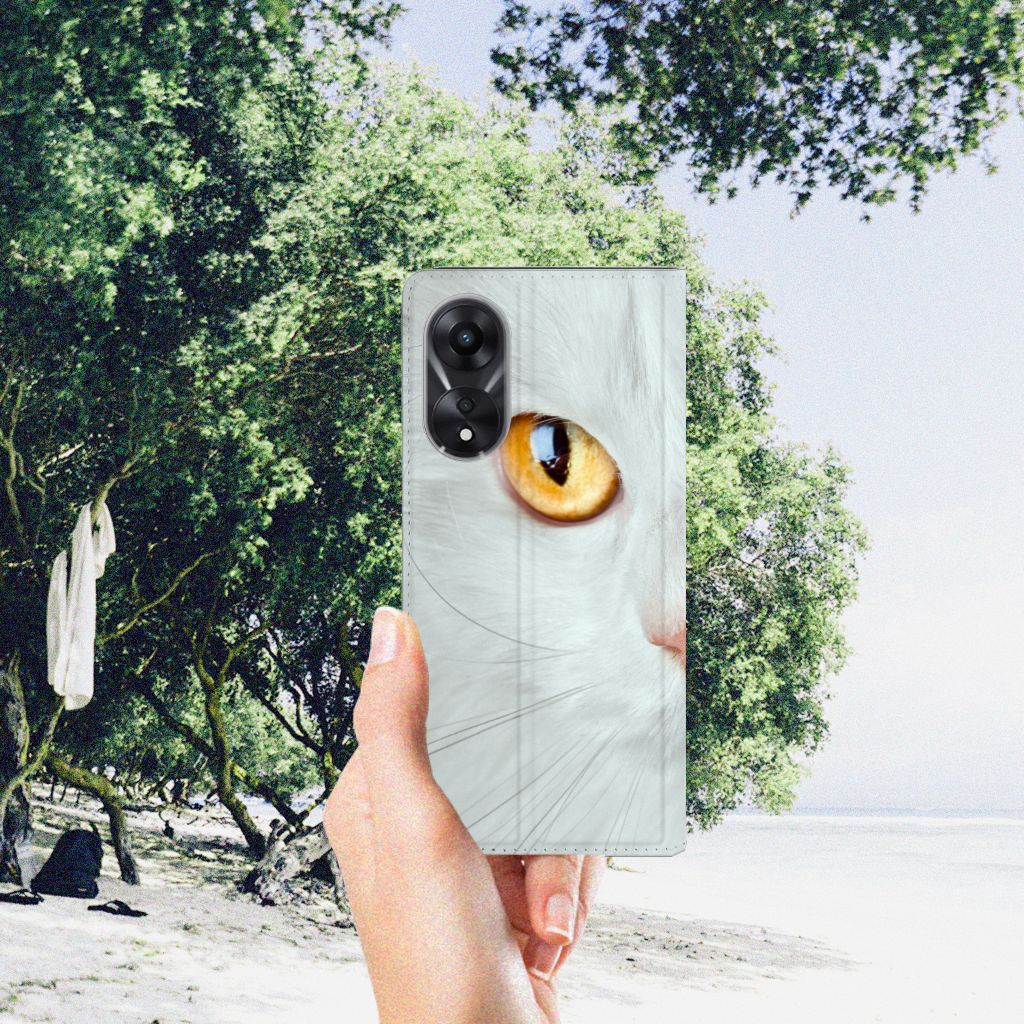 Witte katten zijn natuurlijk extra speciaal, vandaar we een exemplaar op een design hoesje hebben gezet. Een witte kat schijnt trouwens ook slechter te kunnen horen dan katten met een andere kleur. Deze witte kat staat op een zeer prominente wijze op een stand case. Deze stand case met witte kat ziet er geweldig uit en is voorzien van verschillende uitsparingen en een speciale standaard. Een OPPO A78 | A58 5G Hoesje maken met witte kat beschermt jouw smartphone perfect. Alle zijden van de case zijn bedrukt. Jouw smartphone wordt erg duurzaam met dit design hoesje. Het TPU aan de binnenzijde is zeer flexibel en het pu-leer oogt chique. Verder heeft de case een houder voor bijvoorbeeld je rijbewijs aan de binnenkant.