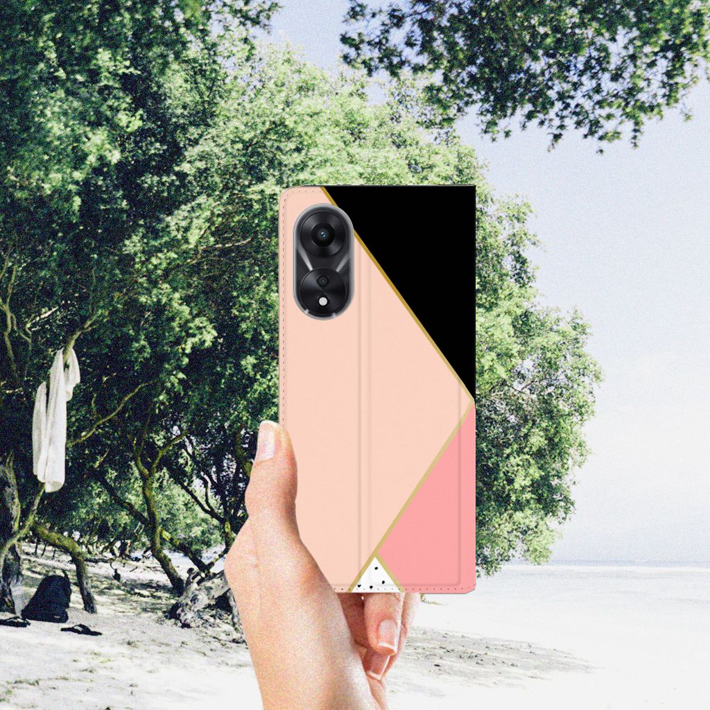 OPPO A78 | A58 5G Print Stand Case Zwart Roze Vormen