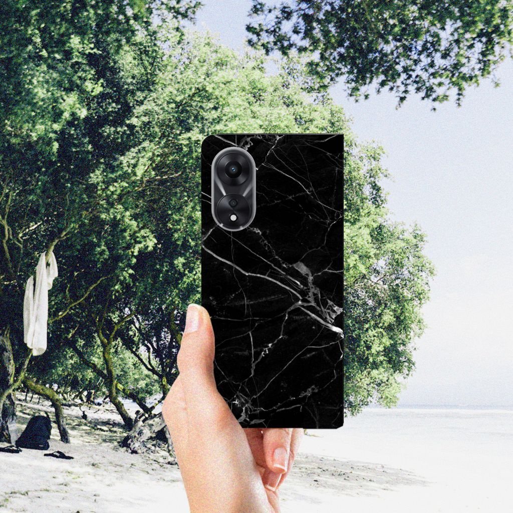 Dit design hoesje met Marmer Zwart is voor de artistieke personen onder ons. De Grieken en Romeinen wisten het materiaal al te waarderen door het in de bouw toe te passen. Naast het witte marmer met haar zacht grijze geaderde belijning zijn de diverse soorten in een gevarieerd kleurenpallet te krijgen. We hebben mooie kleuren op design hoesjes gezet, zoals in dit geval zwart marmer. Dit is een OPPO A78 | A58 5G Standcase met marmer in zwarte kleur. Het marmer wordt bedrukt op alle zijden van een stand case, die beschikt over 1 vakje voor een pasje en een magnetische sluiting aan de binnenzijde. Verder heeft de hoes een houder van TPU. De rijkdom aan kleuren en varianties in afwerking geeft ontwerpers de vrijheid om met marmer hele mooie architectonische projecten te realiseren. Wij hebben onze ontwerper tevens veel vrijheid gegeven. Het resultaat zie je terug in deze stand case met zwart marmer, dat de ideale bescherming voor jouw smartphone biedt.