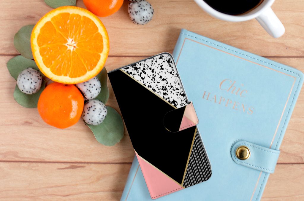 OPPO A91 | Reno3 Bookcase met ruimte voor 3 pasjes Zwart Roze Vormen