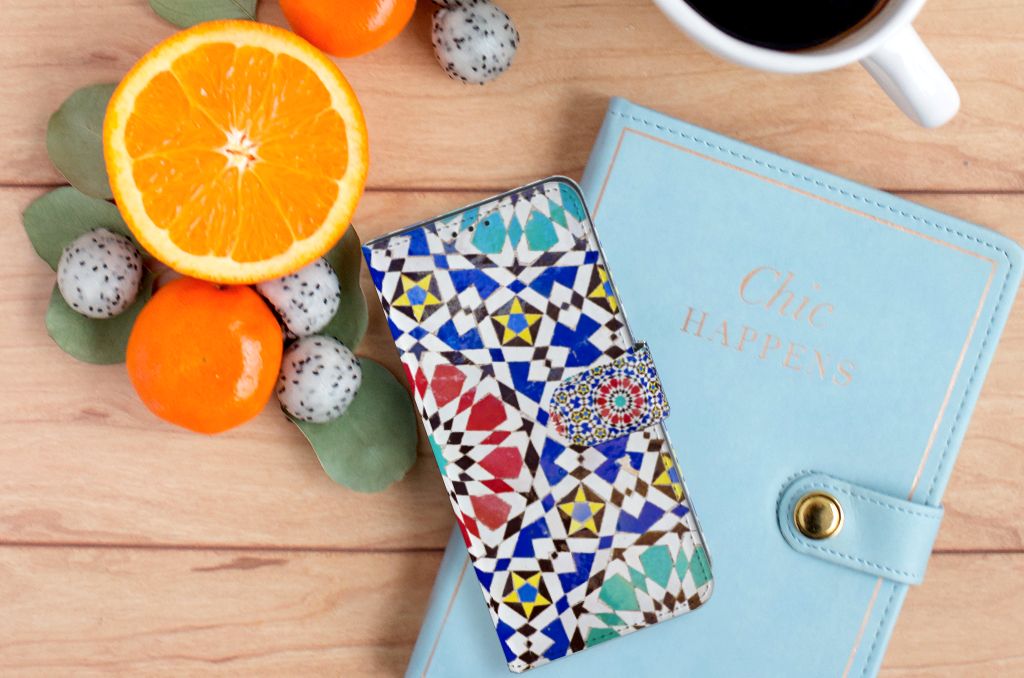 Aan design hoesjes met kunstvormen geen gebrek in onze uitgebreide collectie. Wat dacht je van dit design hoesje met Mozaïek . Dit is een kunstvorm waarbij een grote afbeelding wordt gemaakt uit een groot aantal kleine gekleurde steentjes (tesserae), die in een vloer of wand worden gemetseld. Deze gekleurde steentjes zie je terug op dit boekhoesje met design van mozaïek. Een boekhoesje is zo’n beetje de veiligste case die er bestaat. Een OPPO A91 | Reno3 Bookcase met print zorgt voor een volledige bescherming van je smartphone en wordt aan alle zijden bedrukt met mozaïek. Een deel van de foto’s staat ook op het lipje aan de buitenzijde. Verder is de houder aan de binnenzijde van TPU. De Grieken en Romeinen beheersten de kunst al. Op diverse plaatsen in Europa zijn mozaïeken teruggevonden die tot op de dag van vandaag goed bewaard zijn gebleven. Met een hoesje met mozaïek blijft jouw telefoon in tact. Je pasjes en briefgeld kun je in de vakjes aan de binnenzijde stoppen