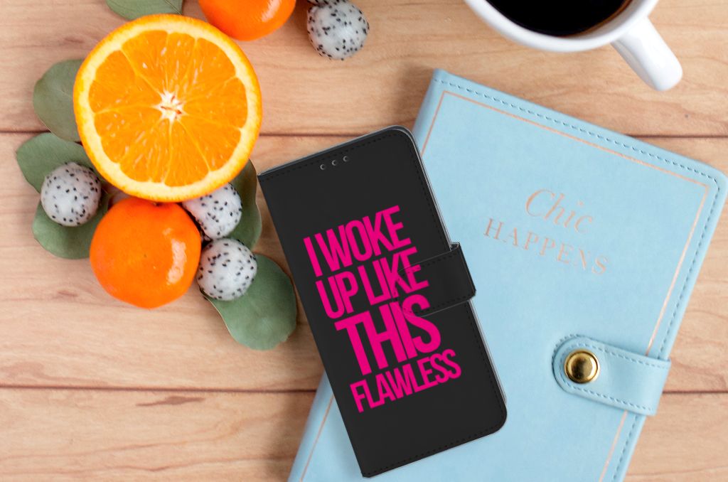 Met dit zwarte OPPO A91 | Reno3 Hoesje met naam met paarse tekst heb je een geweldige bescherming van je smartphone in handen. Dit zwarte hoesje met Woke Up tekst is een must voor jouw smartphone. Met dit design hoesje tekst val je ook zeker op. Je weet ook zeker dat het hoesje exclusief is. Het design is gemaakt door B2C Telecom. Het hoesje heeft verschillende vakjes en is aan alle zijden bedrukt. Ook het lipje aan de buitenkant kan worden bedrukt. De houder is van TPU, de buitenzijde van PU-leer. We willen je er ook op wijzen dat je zelf een hoesje kunt ontwerpen, met eigen beelden en teksten. Met onze Phone Case Designer kun je zelfs opvallende effecten, patronen en clip arts aan het ontwerp toevoegen.