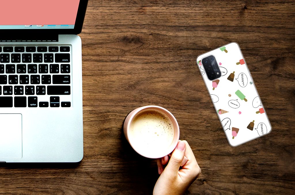 Van deze vrolijke OPPO A93 5G Siliconen Case met daarop verschillende soorten ijsjes met tekstwolkjes krijg je sowieso een vrij en zomers gevoel. De zomer komt naar je toe met deze print van ijsjes met tekstwolkjes. Ben je op het strand, dan ontbreekt een lekker ijsje natuurlijk niet. Net zoals je je smartphone bij de hand hebt, met daaromheen een design hoesje met bijzondere ijsjes en tekstwolkjes. Jouw telefoon kan dan de bescherming in de vorm van een tpu hoesje met ijsjes zeer goed gebruiken. De bovenkant van dit hoesje wordt bedrukt met ijsjes en tekstwolkjes, de zijkanten blijven doorzichtig. De case is gemaakt van schokabsorberend materiaal en past altijd in je broekzak. Onder alle weersomstandigheden zal deze TPU case perfect functioneren, ook in de zomer met een ijsje in je hand.