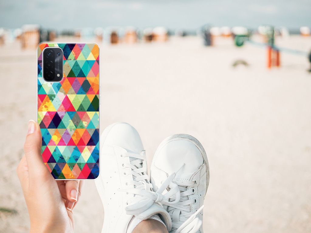 Van dit geruite design hoesje moet je een beetje houden. Maar als je het eenmaal in bezit hebt, ben je waarschijnlijk binnen no time verkocht. Het design heeft ruitjes in alle kleuren van de regenboog en door de grijze achtergrond kan het hoesje enigszins druk overkomen. Maar tegelijkertijd is dit de kracht van het hoesje. Met dit design hoesje Geruit zal je namelijk heel erg opvallen. Dit is voor veel vooral jonge smartphone gebruikers een belangrijk voordeel. Deze geruite print staat op een OPPO A93 5G TPU bumper. Dit zeer flexibele smartphone hoesje heeft alle nodige uitsparingen en past altijd in je broekzak. De case is aan de bovenkant bedrukt, de randen blijven transparant.