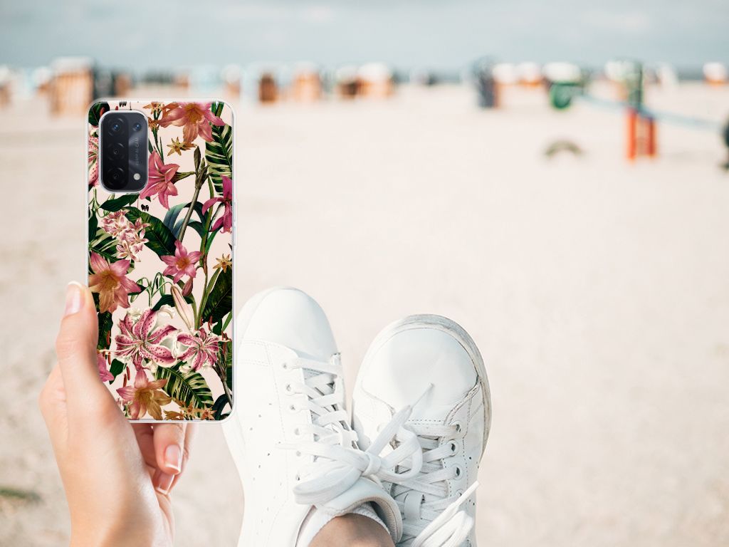 Dit Flowers design is een zegen voor de mens en zijn smartphone. De paarswitte bloemen en groene bladeren op deze OPPO A93 5G TPU Case geven jouw smartphone een zeer sierlijke uitstraling. Je wordt er ook meteen vrolijker van als je aan het appen, mailen of aan het bellen bent. Valt dan je telefoon op de grond, dan zal er dankzij de tpu case met paarswitte bloemen en groene bladeren geen schade ontstaan. Helemaal niet als je er een screenprotector bij hebt gekocht. Onze tpu cases met paarswitte bloemen en groene bladeren zien er zeer prettig uit en zijn heel praktisch, getuige onder meer de opstaande randen en het flexibele materiaal. Alleen de achterkant van de tpu case wordt bedrukt met paarswitte bloemen en groene bladeren, de randen blijven transparant. Op deze tpu case kun je trouwens ook in no time zelf foto’s van jouw favoriete bloemen zetten.