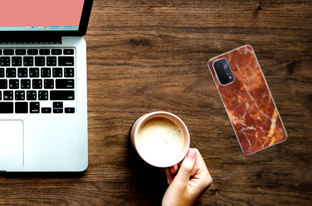 Dit design hoesje met Marmer Bruin is voor de artistieke personen onder ons. De Grieken en Romeinen wisten het al te waarderen door het als bouw- en bekledingsmateriaal toe te passen. Naast het witte Carrara marmer met haar zacht grijze geaderde belijning zijn de diverse soorten in een ruim kleurenpallet te krijgen. We hebben verschillende kleuren op design hoesjes gezet, zoals in dit geval bruin marmer. Dit is een OPPO A93 5G TPU Siliconen Hoesje met marmer in bruine kleur. Het marmer wordt bedrukt op de voorkant van een tpu case, die beschikt over opstaande randen aan de voorkant en heel goed combineert met een screenprotector. De rijkheid aan kleuren en varianties in afwerking geeft ontwerpers de vrijheid om met marmer hele mooie architectonische projecten te realiseren. Wij hebben onze designer ook veel vrijheid gegeven. Het resultaat zie je terug in deze tpu case met bruin marmer, die jouw smartphone goed beschermt. De zijkanten van de case worden niet bedrukt met marmer.