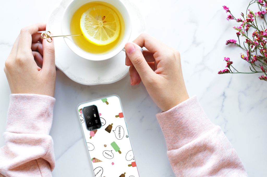 Van deze vrolijke OPPO A94 5G | Reno5 Z Siliconen Case met daarop verschillende soorten ijsjes met tekstwolkjes krijg je sowieso een vrij en zomers gevoel. De zomer komt naar je toe met deze print van ijsjes met tekstwolkjes. Ben je op het strand, dan ontbreekt een lekker ijsje natuurlijk niet. Net zoals je je smartphone bij de hand hebt, met daaromheen een design hoesje met bijzondere ijsjes en tekstwolkjes. Jouw telefoon kan dan de bescherming in de vorm van een tpu hoesje met ijsjes zeer goed gebruiken. De bovenkant van dit hoesje wordt bedrukt met ijsjes en tekstwolkjes, de zijkanten blijven doorzichtig. De case is gemaakt van schokabsorberend materiaal en past altijd in je broekzak. Onder alle weersomstandigheden zal deze TPU case perfect functioneren, ook in de zomer met een ijsje in je hand.