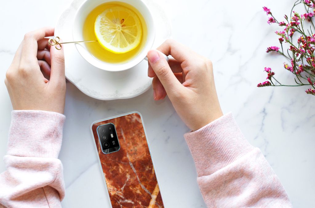 Dit design hoesje met Marmer Bruin is voor de artistieke personen onder ons. De Grieken en Romeinen wisten het al te waarderen door het als bouw- en bekledingsmateriaal toe te passen. Naast het witte Carrara marmer met haar zacht grijze geaderde belijning zijn de diverse soorten in een ruim kleurenpallet te krijgen. We hebben verschillende kleuren op design hoesjes gezet, zoals in dit geval bruin marmer. Dit is een OPPO A94 5G | Reno5 Z TPU Siliconen Hoesje met marmer in bruine kleur. Het marmer wordt bedrukt op de voorkant van een tpu case, die beschikt over opstaande randen aan de voorkant en heel goed combineert met een screenprotector. De rijkheid aan kleuren en varianties in afwerking geeft ontwerpers de vrijheid om met marmer hele mooie architectonische projecten te realiseren. Wij hebben onze designer ook veel vrijheid gegeven. Het resultaat zie je terug in deze tpu case met bruin marmer, die jouw smartphone goed beschermt. De zijkanten van de case worden niet bedrukt met marmer.
