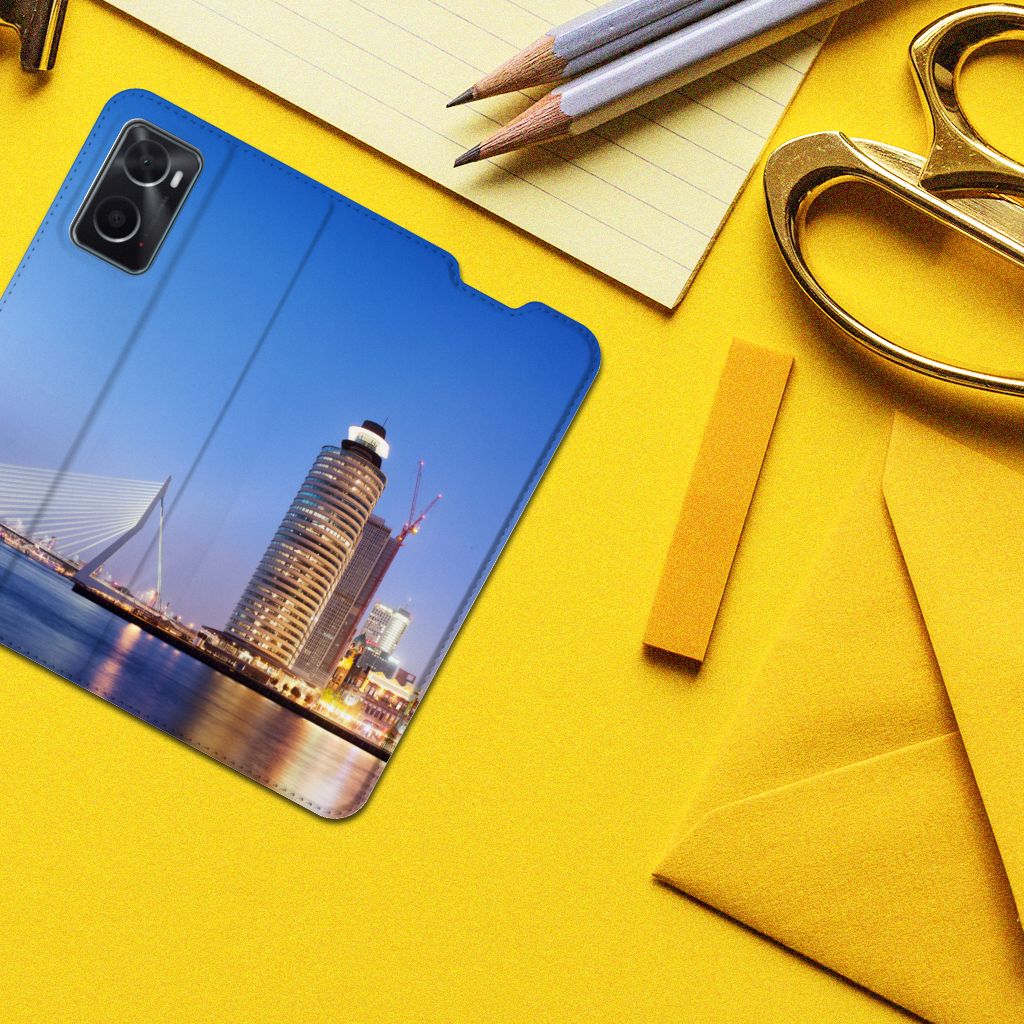 Een hoesje met de Rotterdamse skyline is niet alleen voor de plaatselijke inwoners een bijzonderheid. Ook jij zult glimmen van trots wanneer het gaat over jouw stand case met de Rotterdamse skyline. Sinds 1975 zijn hoogbouw en Rotterdam onlosmakelijk met elkaar verbonden. Dat zie je duidelijk terug als je dit smartphone hoesje koopt. Een OPPO A96 | A76 Book Cover is zeer praktisch dankzij het opbergvakje aan de binnenzijde en de magnetische sluiting en beschermt jouw smartphone aan alle zijden. Dankzij het platte Hollandsche landschap zie je de Rotterdamse binnenstad vanuit verschillende posities liggen. Beloon jezelf en je telefoon met dit mooi Rotterdamse stand hoesje. De case heeft een houder van TPU, waar jouw telefoon precies in past.