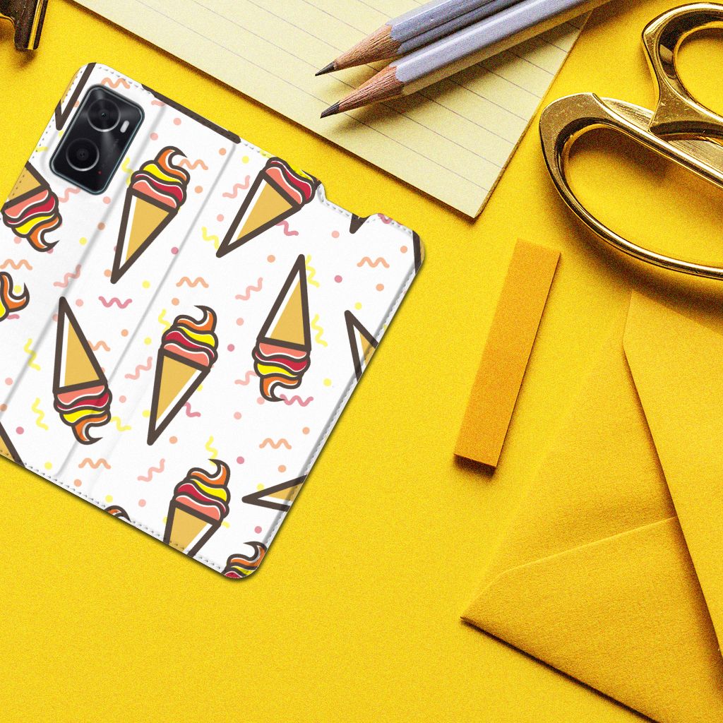 Een vrolijke OPPO A96 | A76 Flip Style Cover met daarop verschillende ijsjes. Als je daar geen zomers gevoel meer van krijgt, weten wij het ook niet meer. De zomer en ijsjes zijn onlosmakelijk met elkaar verbonden. Tijdens een bezoekje aan het strand mag een lekker ijsje bijvoorbeeld niet ontbreken. Een design hoesje met lekkere Icecream print past daar natuurlijk ook ontzettend goed bij. Jouw telefoon is helemaal beschermd met een stand case met ijsjes design. De aankoop van deze case is een heerlijke investering, die zich gegarandeerd terugbetaalt. Alle zijden van dit hoesje worden bedrukt met ijsjes. De case heeft een speciale standaard en de houder aan de binnenzijde is van TPU. Onder alle weersomstandigheden zal deze case met opbergvakje perfect functioneren, ook in de zomer met een ijsje in je hand. Dit smaakvolle hoesje is zeer goedkoop te bestellen en wordt zeer snel bezorgd.