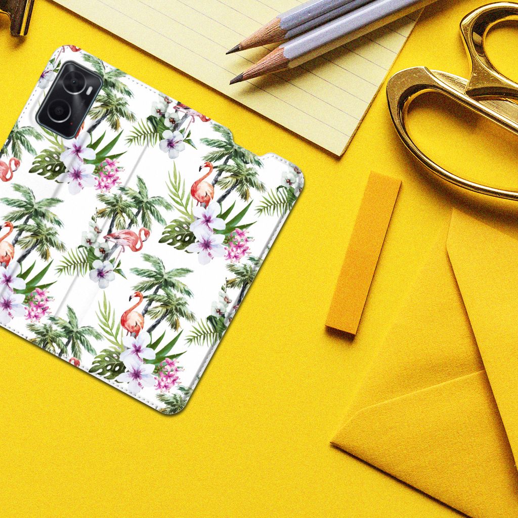Een OPPO A96 | A76 Hoesje maken met Flamingo Palms is in vele opzichten bijzonder. De rode flamingo op het hoesje kent zijn oorsprong in het Caraïbische gebied. Stel dat je in deze regio vakantie aan het vieren bent, dan val je zonder meer op met dit hoesje met flamingo’s en palmbomen. Dit hoesje biedt bescherming voor alle zijden van je telefoon. Jouw apparaat ligt goed opgeborgen in de TPU houder aan de binnenzijde en de buitenkant van het hoesje met flamingo’s en palmbomen heeft een magnetische sluiting. Ook de palmbomen op deze stand case geven jou natuurlijk een ultiem vakantiegevoel. Het stand hoesje met flamingo’s en palmbomen heeft een vakje voor pasjes en een standaard en is op maat gemaakt.