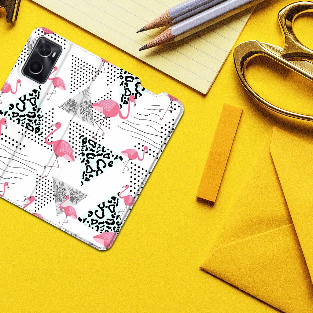 Een OPPO A96 | A76 Hoesje maken met Flamingo Triangle is in vele opzichten bijzonder. De rode flamingo op het hoesje komt oorspronkelijk uit het Caraïbische gebied. Stel dat je in deze regio vakantie viert, dan val je zonder meer op met dit hoesje met flamingo’s en driehoeken. Deze stand case biedt bescherming voor alle zijden van je telefoon. Jouw smartphone ligt goed opgeborgen in de TPU houder aan de binnenzijde en in dit gedeelte van het hoesje met flamingo’s en driehoeken zit de magnetische sluiting. Ook de palmbomen op deze stand case bieden het ultieme vakantiegevoel. De stand case met flamingo’s en driehoeken heeft vakjes voor pasjes en is op maat gemaakt.