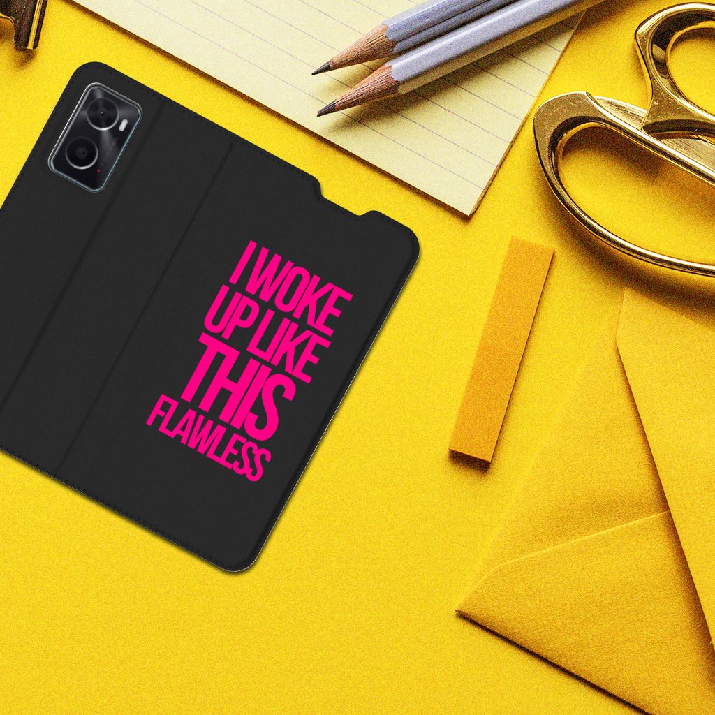 Met deze zwarte OPPO A96 | A76 Hoesje met tekst met deze paarse tekst kun je met recht trots zijn. De case komt als geroepen voor jouw smartphone. Met dit zwarte design hoesje met Woke Up tekst heb je een zeer solide product in handen. Dit zeer populaire smartphone hoesje heeft 1 vakje en is aan alle zijden bedrukt. Verder heeft de case een standaard en een magneet aan de binnenkant. De houder is van TPU, de buitenzijde van PU-leer. We willen je er ook op wijzen dat je zelf een hoesje kunt ontwerpen, met eigen beelden en teksten. Met onze Phone Case Designer kun je zelfs opvallende effecten, patronen en clip arts aan het ontwerp toevoegen.