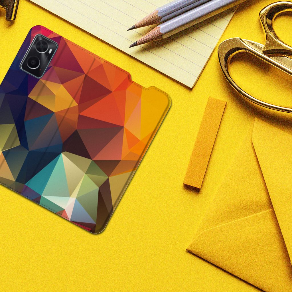 Veelkleurige driehoeken die samen eindeloze asymmetrische patronen lijken te vormen. Het is het abstracte schouwspel dat op dit fraaie hoesje voor je OPPO A96 | A76 direct de aandacht trekt noemen we voor het gemak trekt noemen we voor het gemak Polygon Color. De een ziet er een berglandschap in, de ander piramides. Wat zie jij erin? Zeker is in elk geval dat de aanblik van dit fascinerende ontwerp je niet snel gaat vervelen. Het kleurige spel van lijnen en vlakken blijft eindeloos boeien en geeft jouw Stand Case een hippe en kunstzinnige uitstraling. De kracht die het lijnenspel uitstraalt, komt ook terug in het hoesje zelf. De solide hoes van PU-leer beschikt ook over een 1 pashouder en een speciale standaard. Het hoesje wordt afgesloten met een magneet aan de binnenzijde. De houder aan de binnenzijde is van TPU. Alle zijden worden bedrukt.