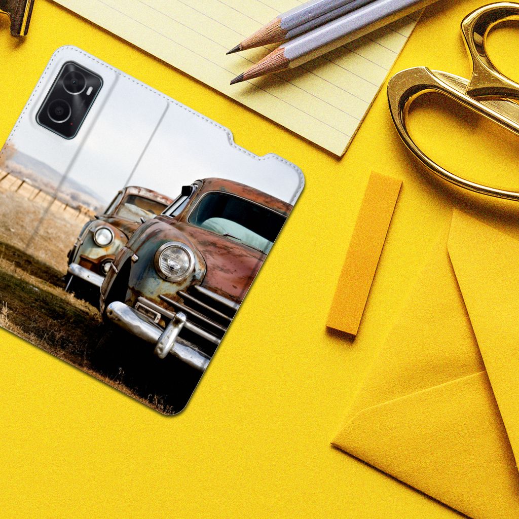 Autoliefhebbers met een voorkeur voor vintage zullen in hun nopjes zijn met dit design hoesje. We hebben een boekhoesje met print van Vintage Auto speciaal op maat gemaakt voor jouw smartphone. Door de achtergrond van dit hoesje krijgt de case met vintage auto’s echt een mooie retro look. Een OPPO A96 | A76 Stand Case is een van onze meest populaire producten. Dit komt onder andere doordat ze jouw smartphone aan alle zijden beschermen. Verder is de case zeer praktisch. Wat denk je bijvoorbeeld van het vakje aan de binnenzijde en de magnetische sluiting. Verder heeft het hoesje een flexibele en stevige houder van TPU aan de binnenzijde. Zie je liever je eigen auto staan op de stand case? Dan raden we je aan zelf een stand case met foto’s van auto’s te ontwerpen op onze website.