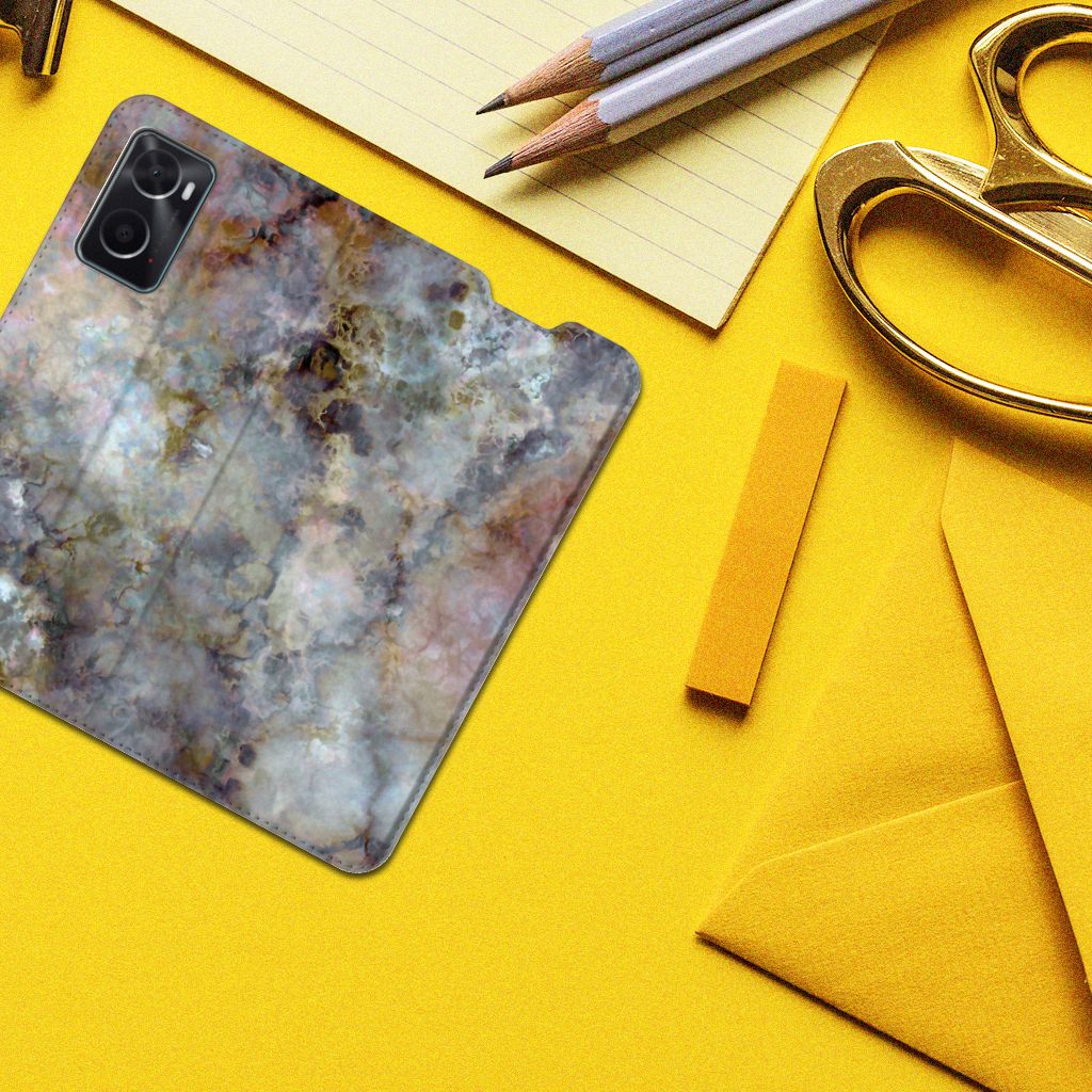 Deze OPPO A96 | A76 Standcase met Deze OPPO A96 | A76 Standcase met marmer grijs is geen doorsnee product, maar onderscheidend in alle opzichten. Marmer is een zeer gewaardeerd bouwmateriaal, dit gaat zelfs terug tot de Romeinen, waardoor dit ook een symbolische waarde heeft op dit hoesje. Het stevige stand hoesje in een grijze kleur beschikt over een vakje voor een pasje of briefgeld en een magnetische sluiting aan de binnenzijde. Verder heeft de case met grijze marmer een houder van TPU. Marmer doet het goed op onze smartphone hoesjes. We hebben deze in zeer veel verschillende kleuren in ons assortiment zitten. Kijk maar eens naar dit boekhoesje met grijze marmer, dat de ideale bescherming voor jouw smartphone biedt. Je kunt het hoesje met grijs marmer ook gebruiken als basis voor je eigen ontwerp. Behalve het grijs kun je dan nog vele andere kleuren toevoegen. Om nog maar te zwijgen over die mooie foto’s en teksten van jezelf.