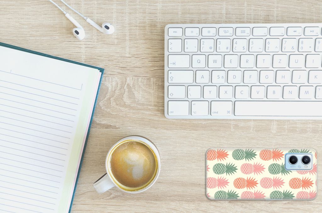 Ananas is een woord uit het Tupi, de taal van de Tupi-indianen, en betekent uitmuntende vrucht. Dit fruit van zeer hoge kwaliteit staat op onze superieure boekhoesjes, stand cases, hard cases en TPU cases. Jij blijft er gezond uitzien als je zo nu en dan een hap neemt van een Ananas , jouw smartphone blijft tip top in orde als je er een leuk telefoonhoesje omheen doet. Een ananas heeft stevig, veerkrachtig vruchtvlees. Een beetje te vergelijken met het TPU in onze hoesjes. TPU is elastisch materiaal, dat zeer buigzaam is. Vandaar dat het zeer schokbestendig is. Het ananas design staat op een staat op een TPU case. Deze OPPO A96 | OPPO A76 Siliconen Case wordt alleen aan de bovenkant bedrukt en is zeer flexibel. De randen van het hoesje blijven transparant.