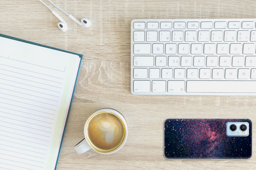 Je waant je in de zevende hemel met dit kunstzinnige, glitterachtige design hoesje met paarse en blauwe kleuren tegen een inktzwarte achtergrond. Het smartphone hoesje heeft ook een wat science fiction achtige allure. Met deze design Stars case zul je zeker opvallen. Als dit je bedoeling is, bestel dat snel dit waanzinnig mooie product voor je OPPO A96 | OPPO A76. Het telefoonhoesje is van alle gemakken voorzien en combineert een hele fraaie uitstraling met maximaal comfort. Bovendien is het gemaakt van zeer stevig en flexibel materiaal. Het unieke design, door B2C Telecom ontworpen, staat op een TPU Hoesje. Dit hoesje wordt alleen aan de bovenkant bedrukt en is zeer flexibel. De randen van het hoesje blijven transparant en worden niet bedrukt. Met dit hoesje past jouw telefoon altijd in je broekzak.
